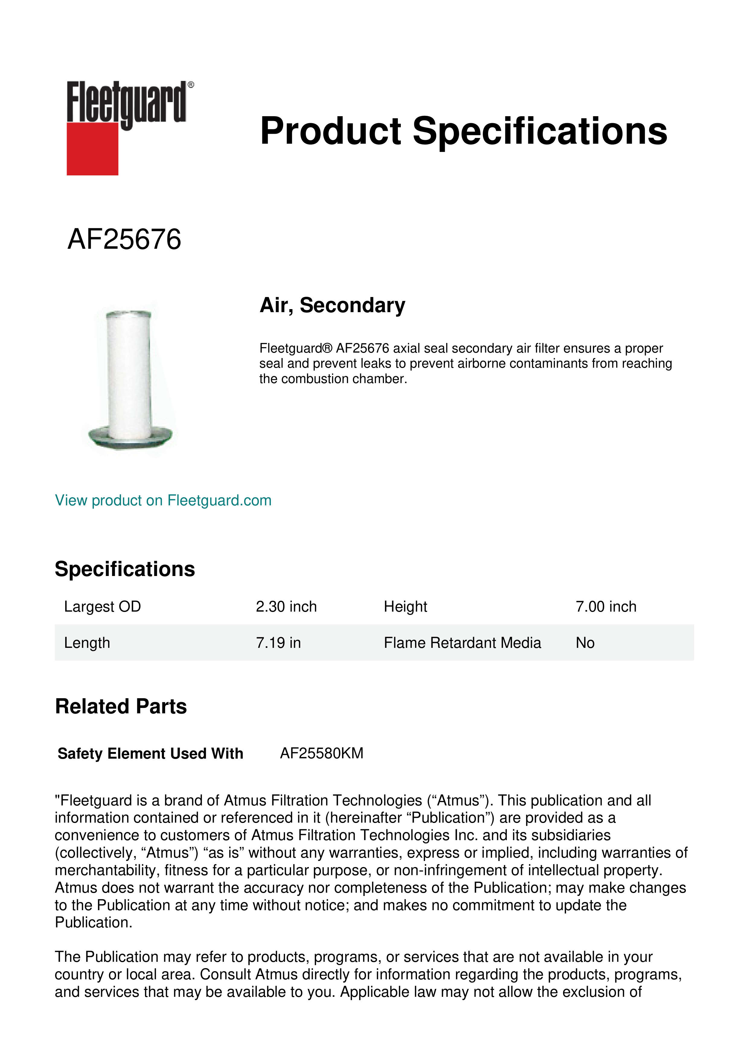 Fleetguard AF25676 Air, Secondary