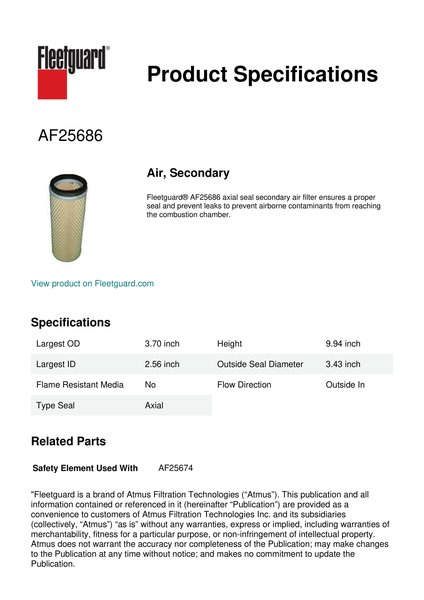 Fleetguard AF25686 Air, Secondary