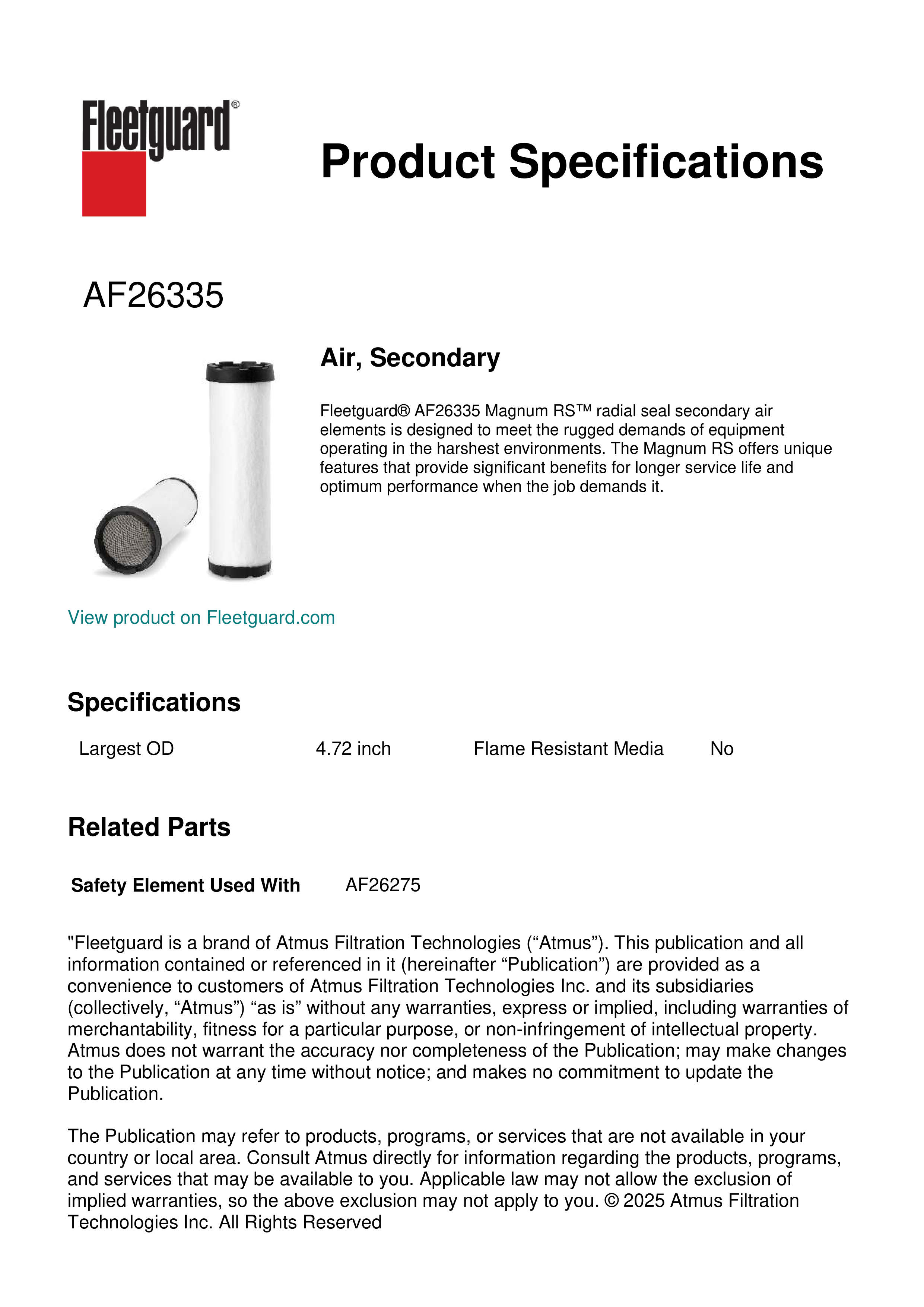 Fleetguard AF26335 Air, Secondary