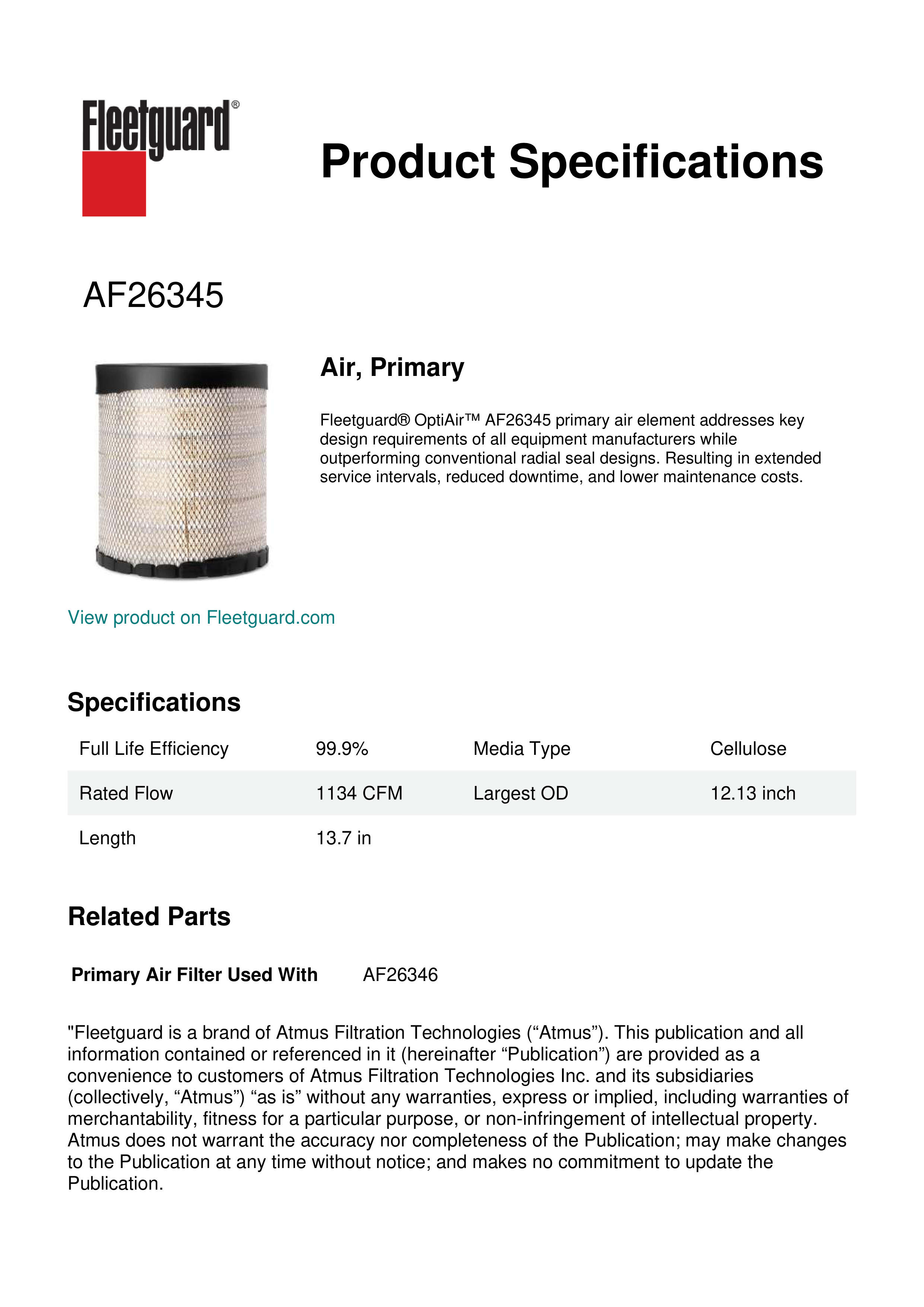 Fleetguard AF26345 Air, Primary