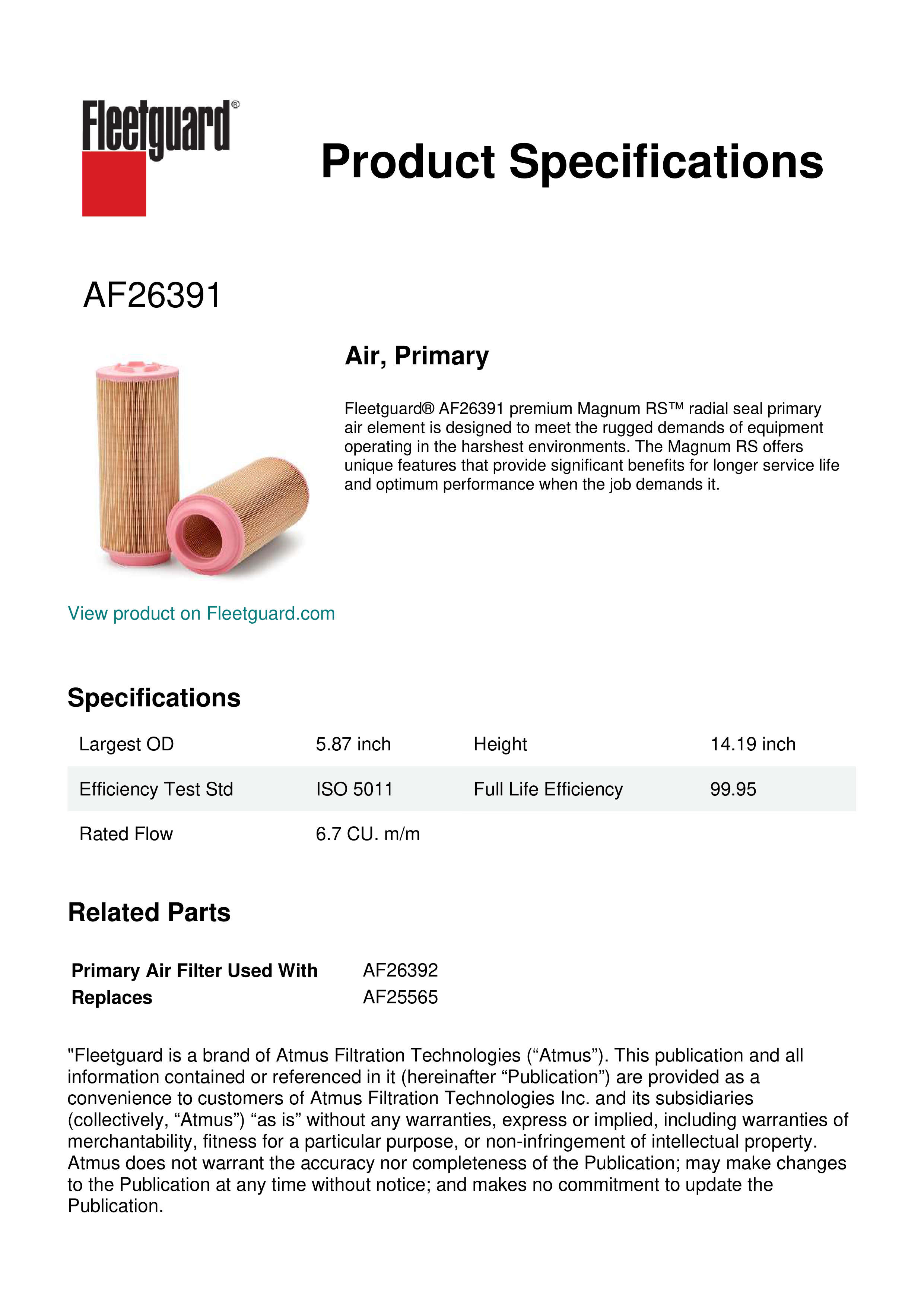 Fleetguard AF26391 Air, Primary