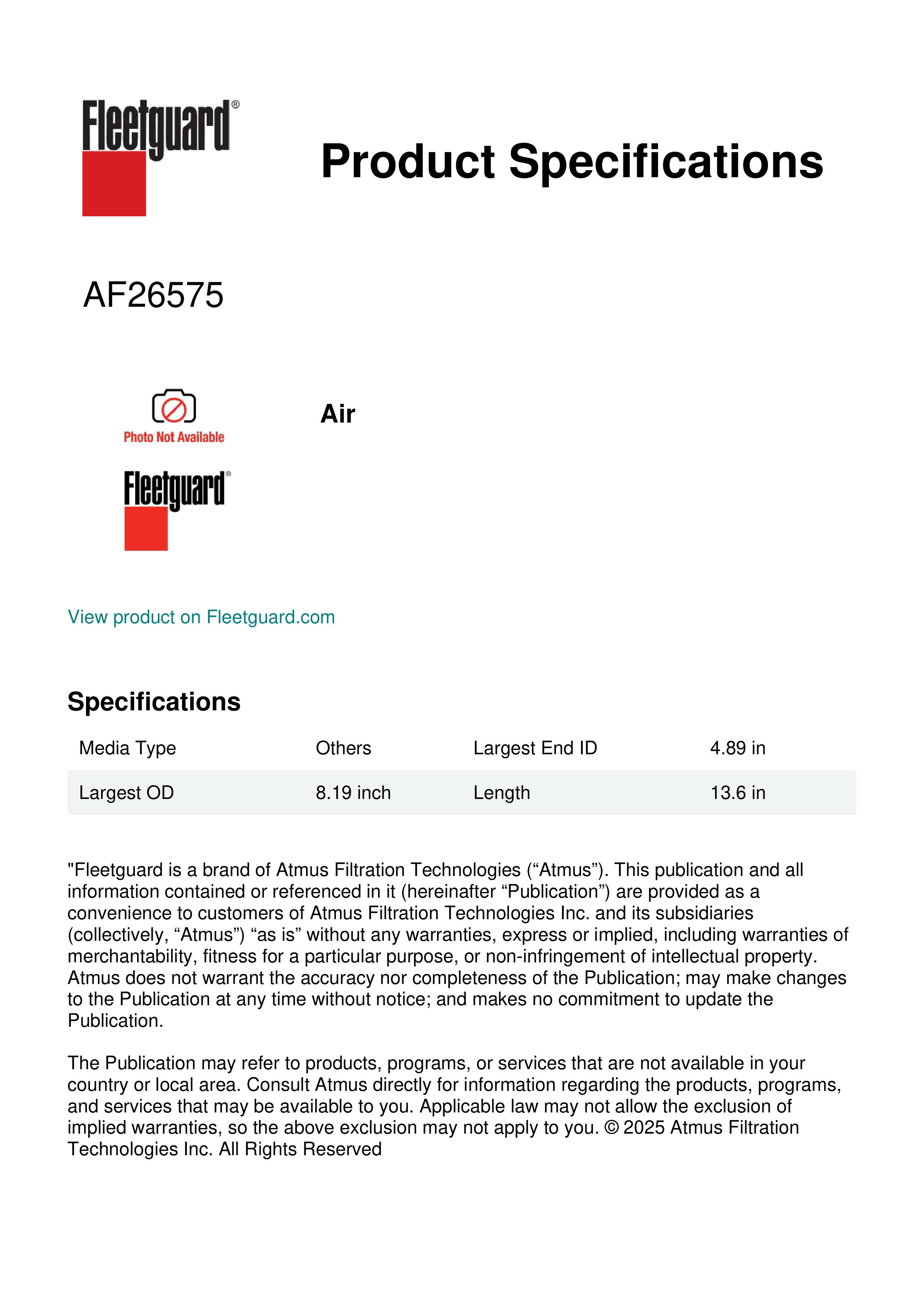 Fleetguard AF26575 Air