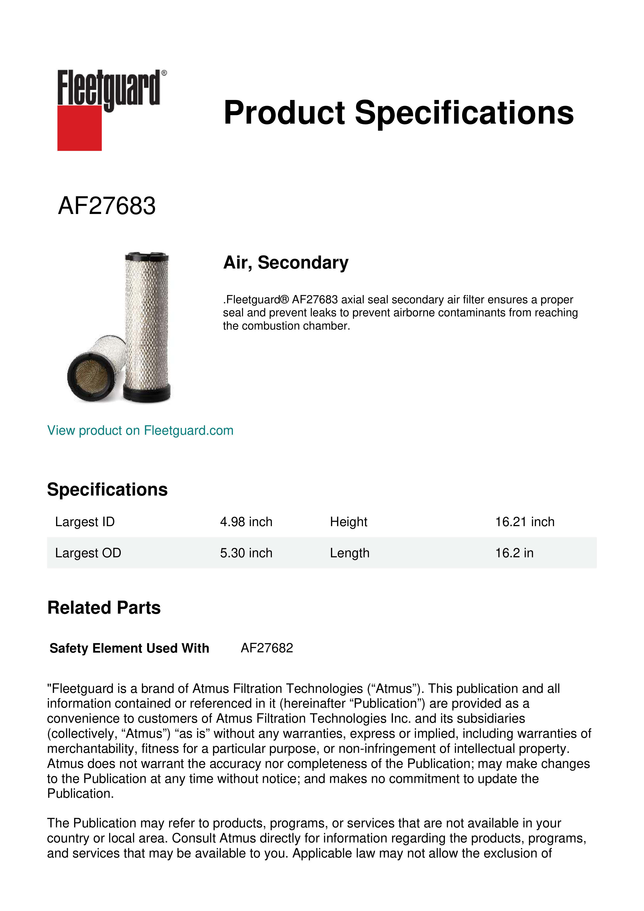Fleetguard AF27683 Air, Secondary