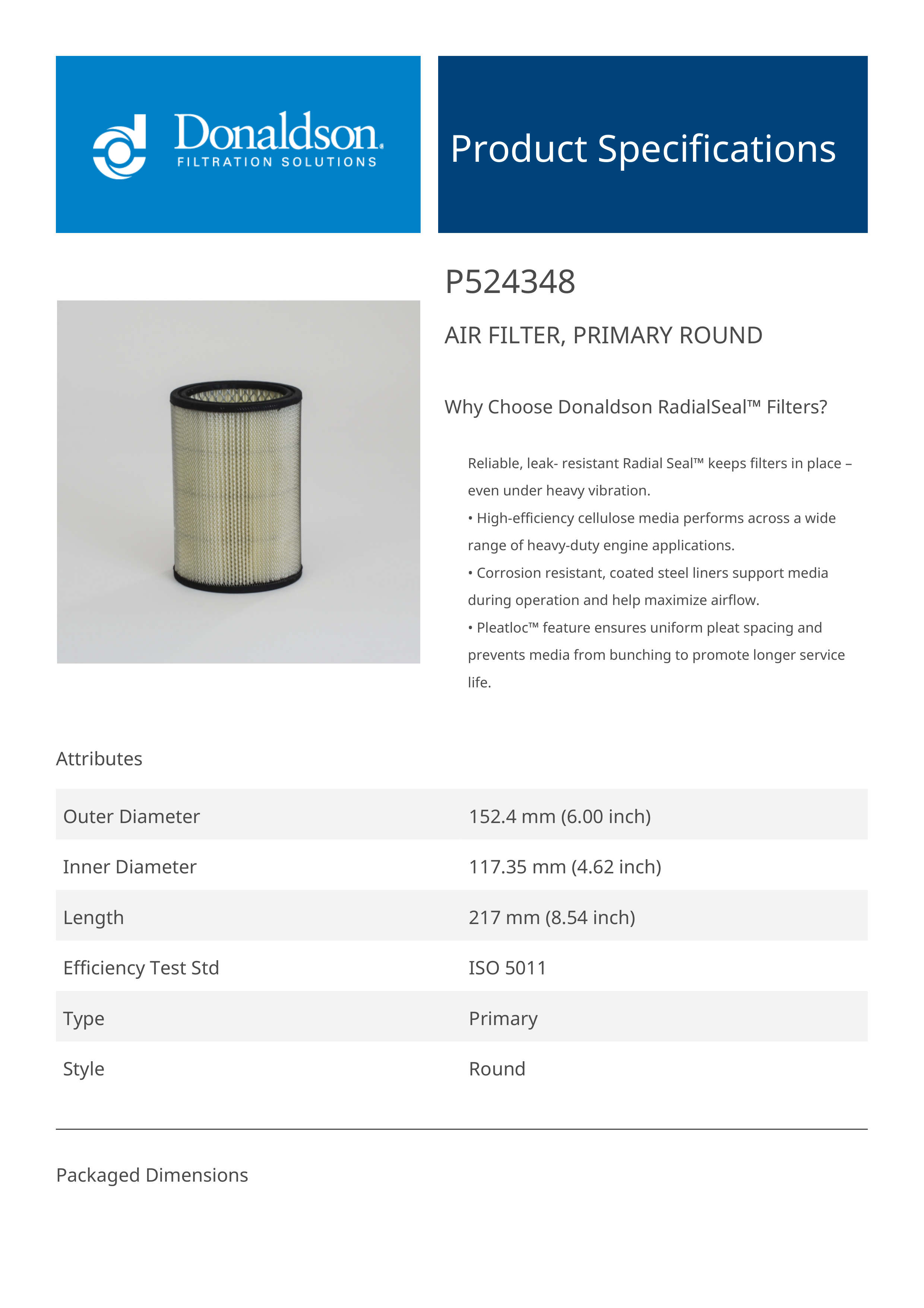 Donaldson P524348 Air Filter, Primary Round | Replaces the Fleetguard AF277