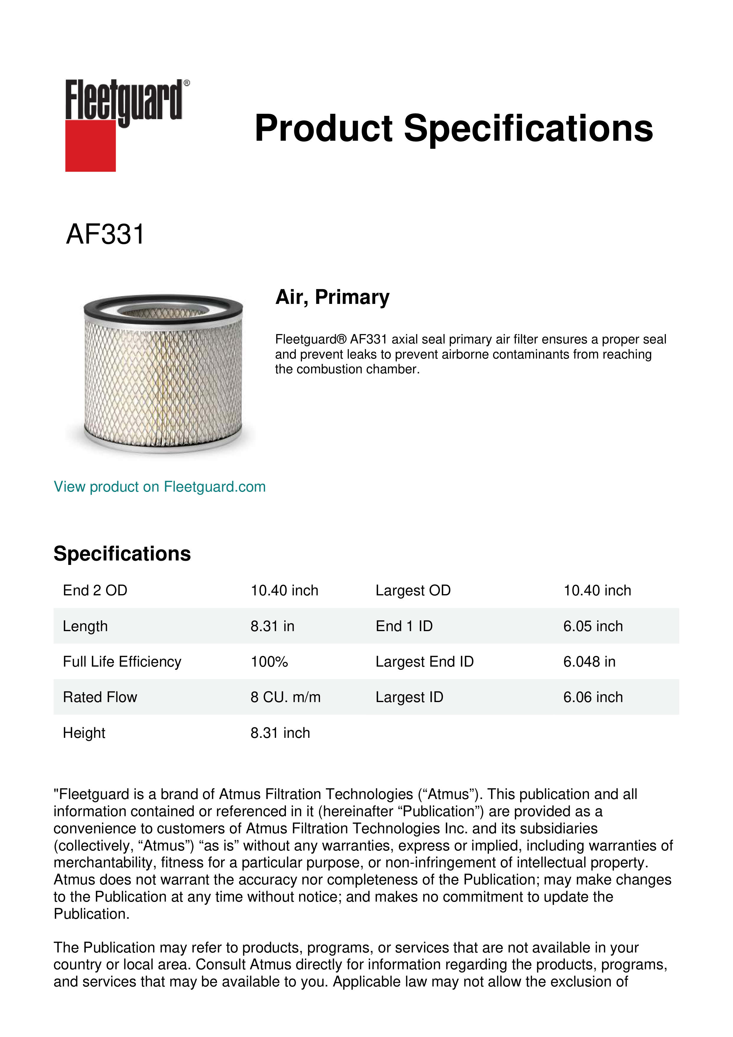 Fleetguard AF331 Air, Primary