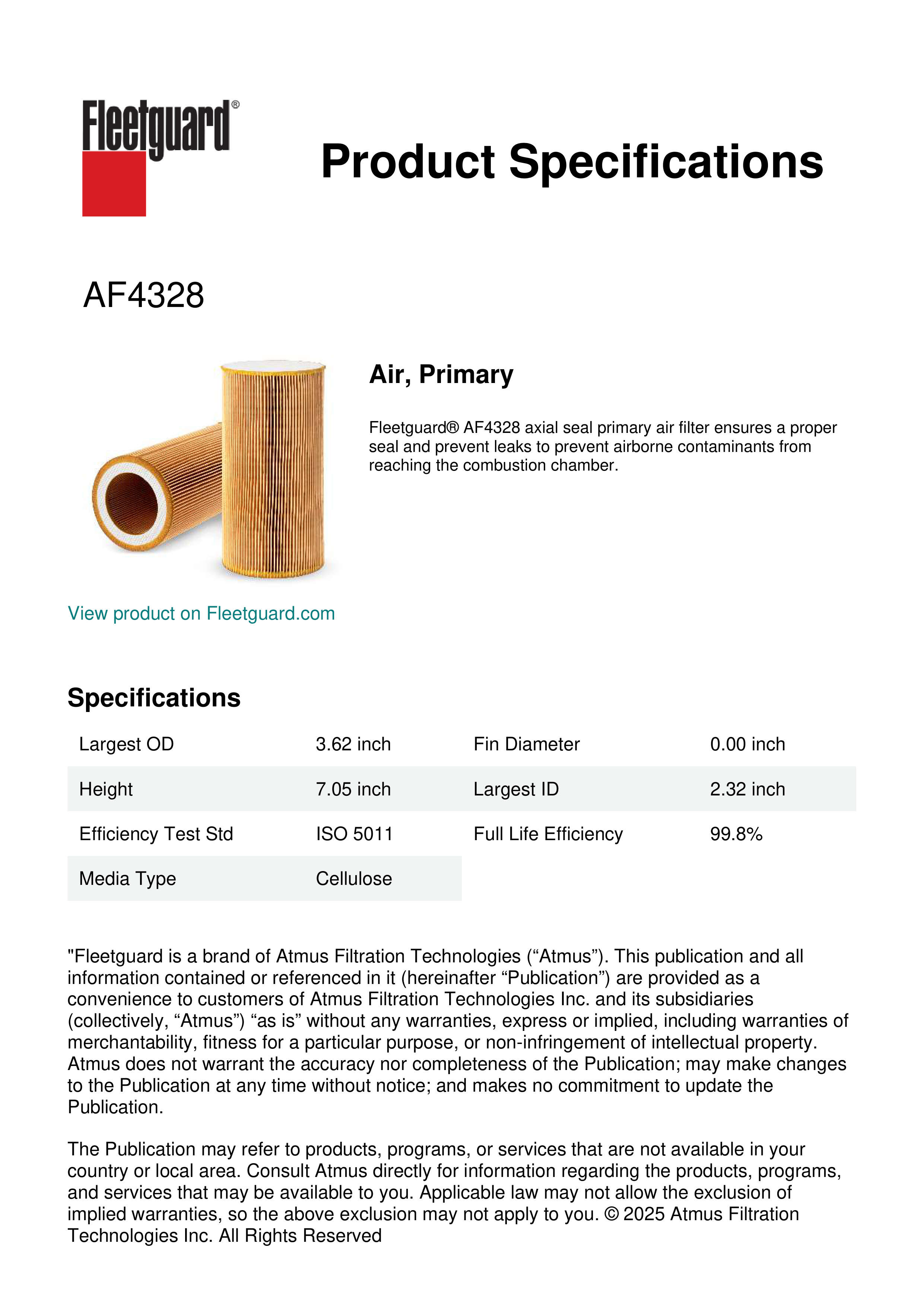 Fleetguard AF4328 Air, Primary