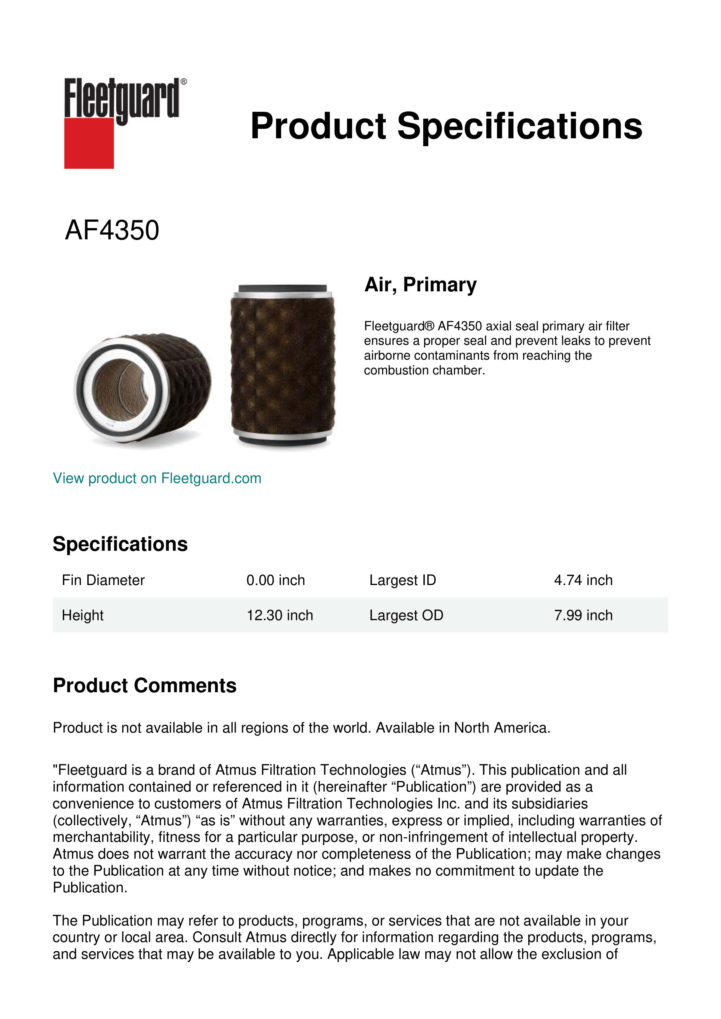 Fleetguard AF4350 Air, Primary