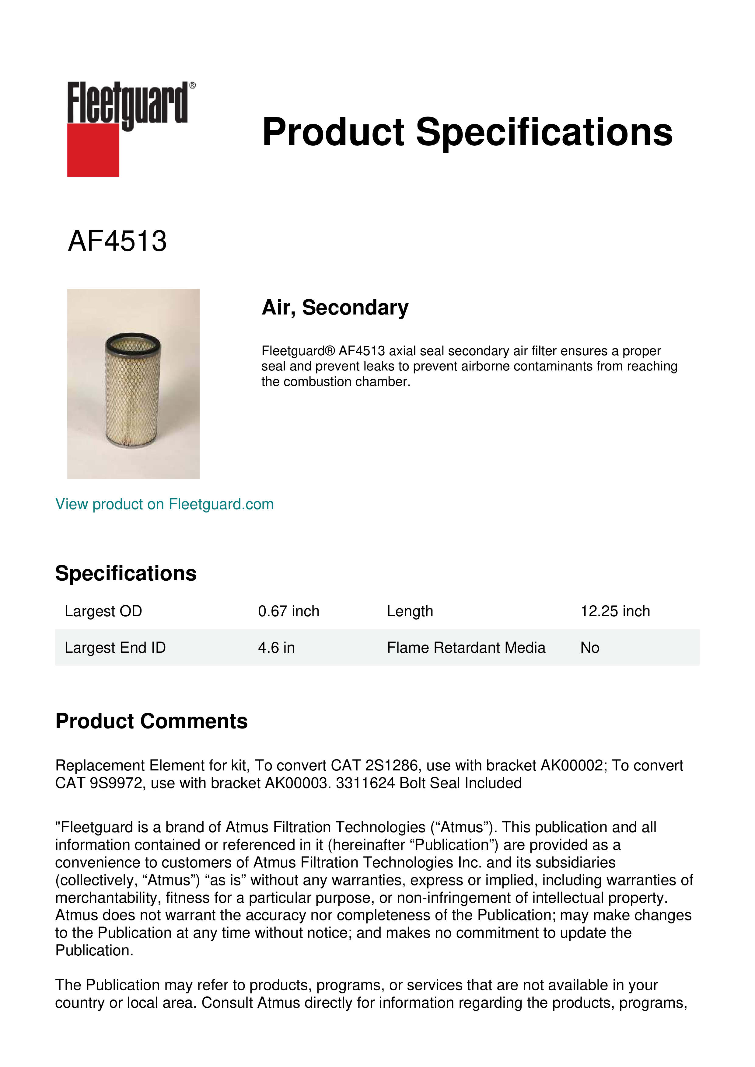Fleetguard AF4513 Air, Secondary
