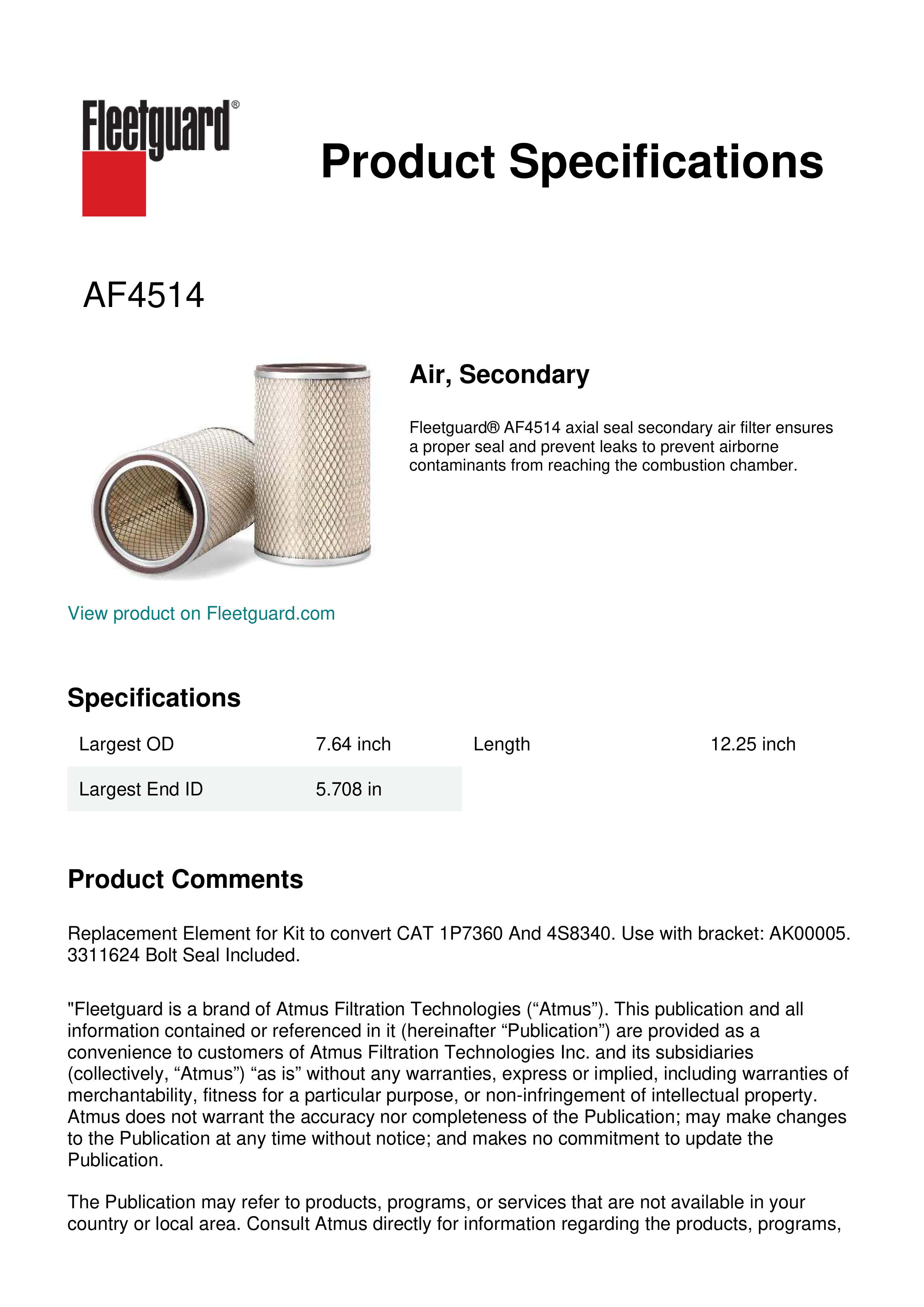 Fleetguard AF4514 Air, Secondary
