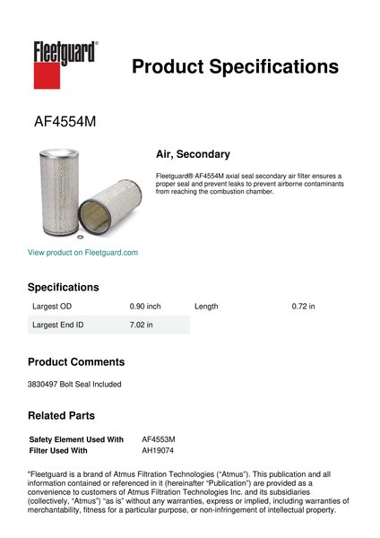 Fleetguard AF4554M Air, Secondary