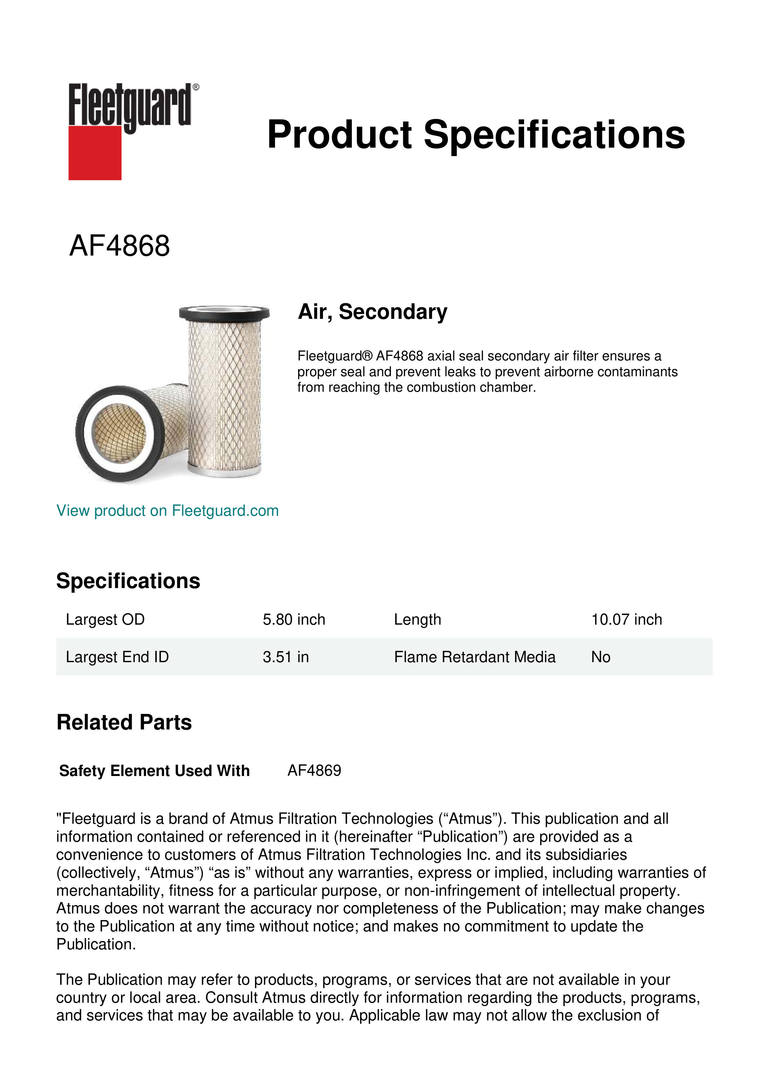 Fleetguard AF4868 Air, Secondary