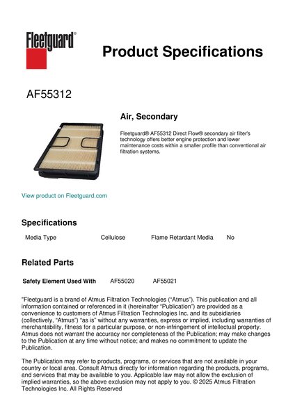 Fleetguard AF55312 Air, Secondary