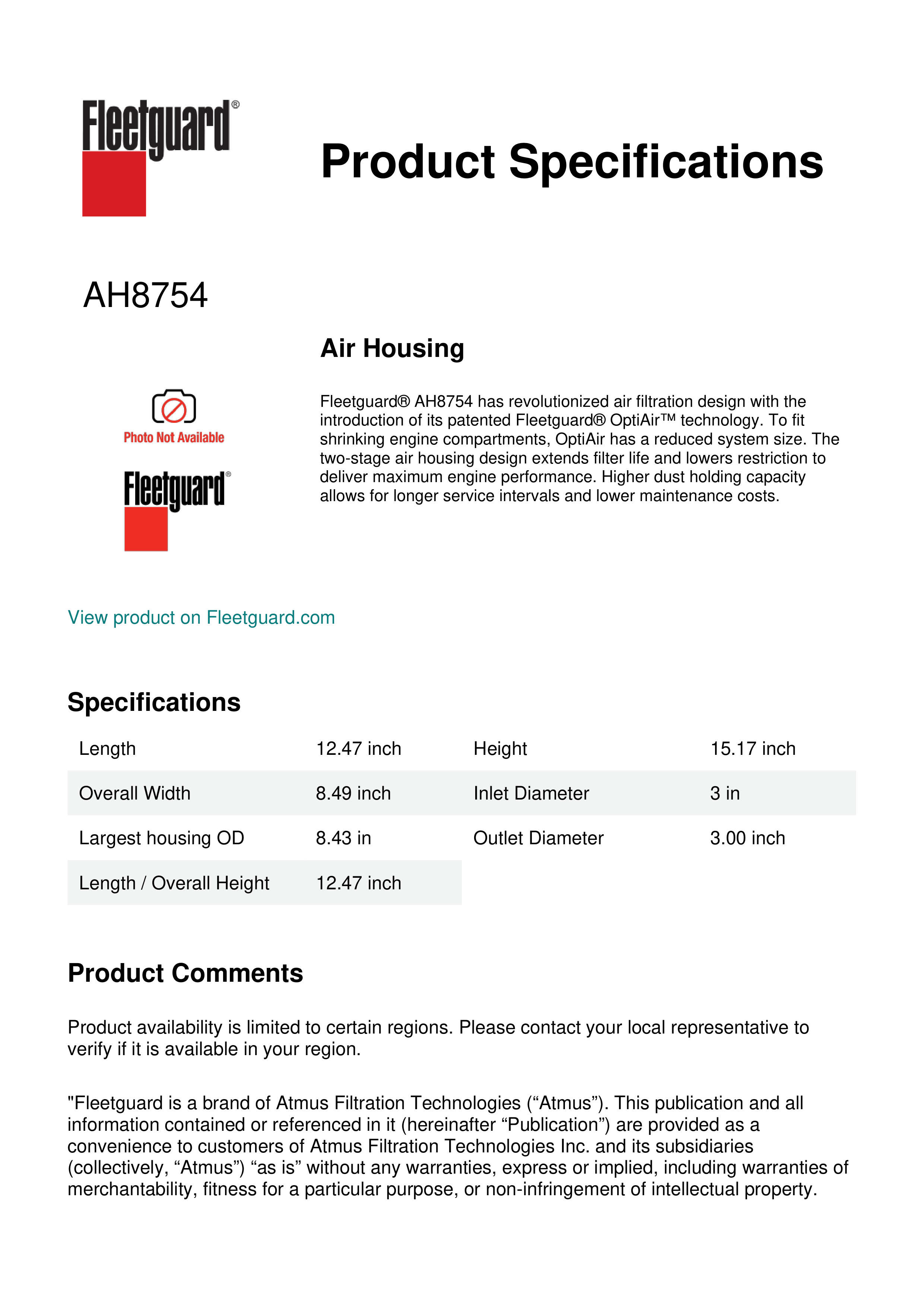 Fleetguard AH8754 Air Intake Systems