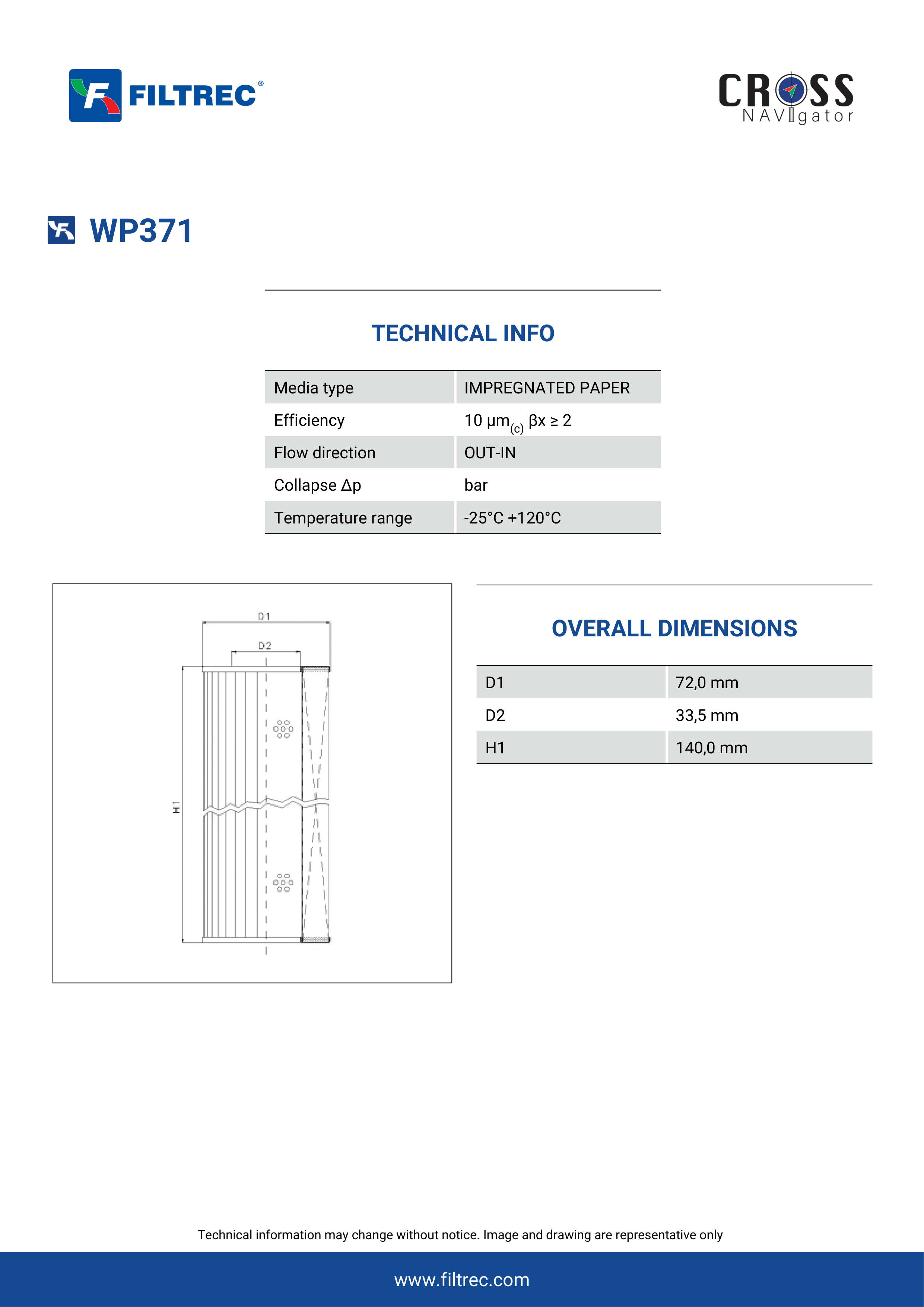 Genuine Filtrec WP371. This Filtrec element is designed to meet or exceed the quality and performance of brand OEM’s ensuring superior filtration performance and long-lasting durability.