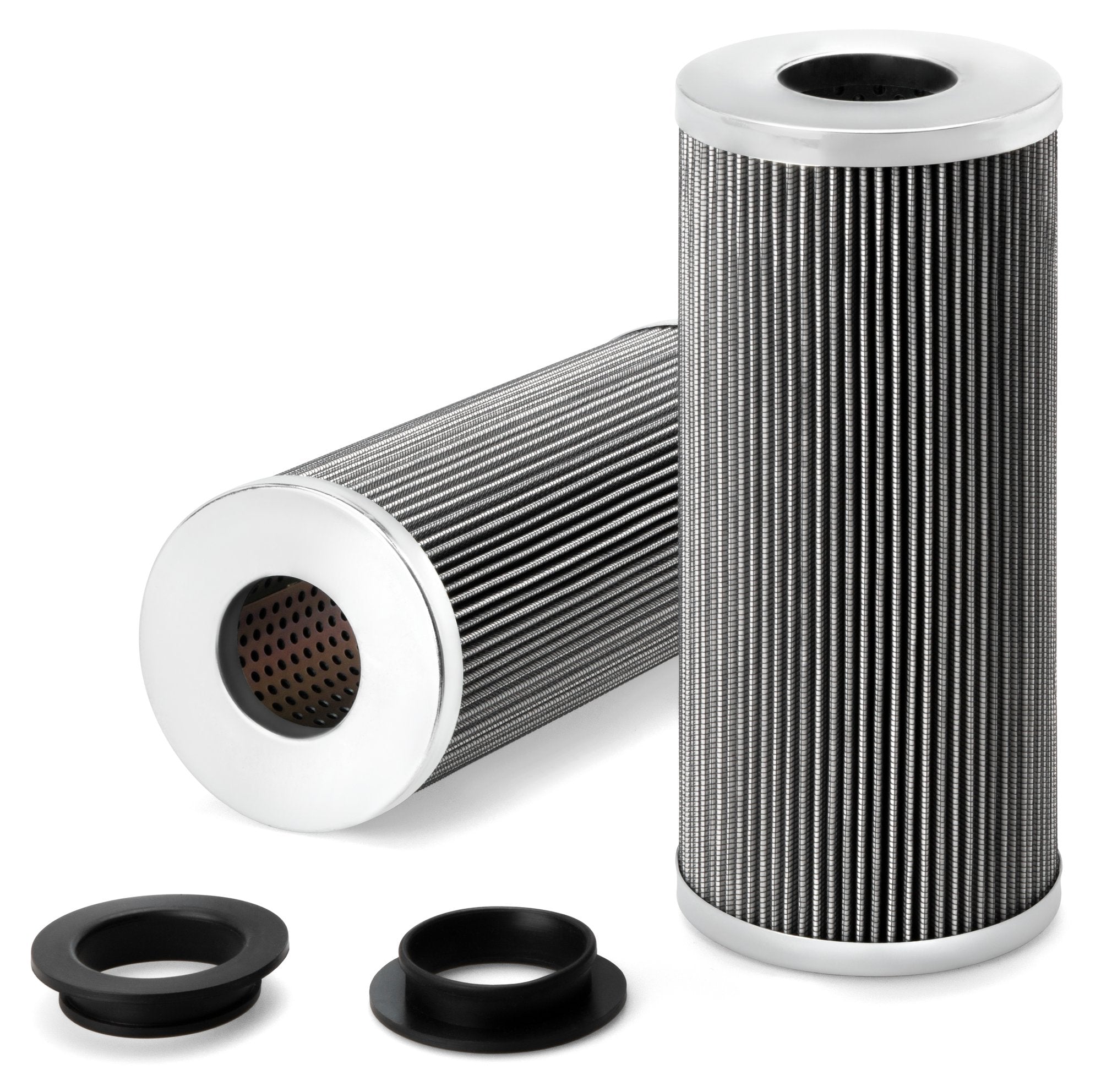 The efficiency of the element is shown using the Micron (µ) and Beta (β) ratings. The micron rating indicates the size of the particle being filtered and the beta rating the efficiency, calculated as 1/β.