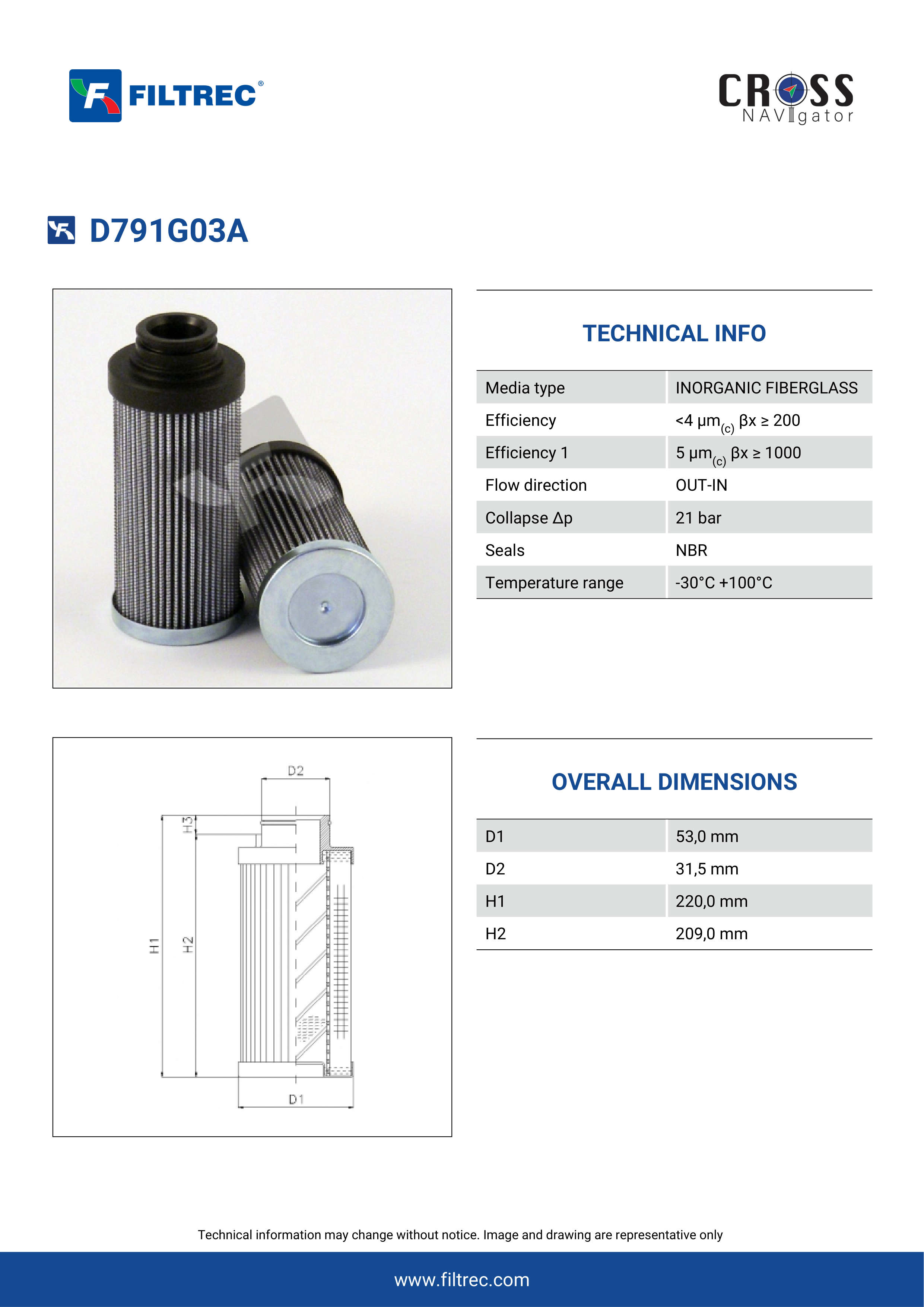 Genuine Filtrec D791G03A. This Filtrec element is designed to meet or exceed the quality and performance of brand OEM’s ensuring superior filtration performance and long-lasting durability.