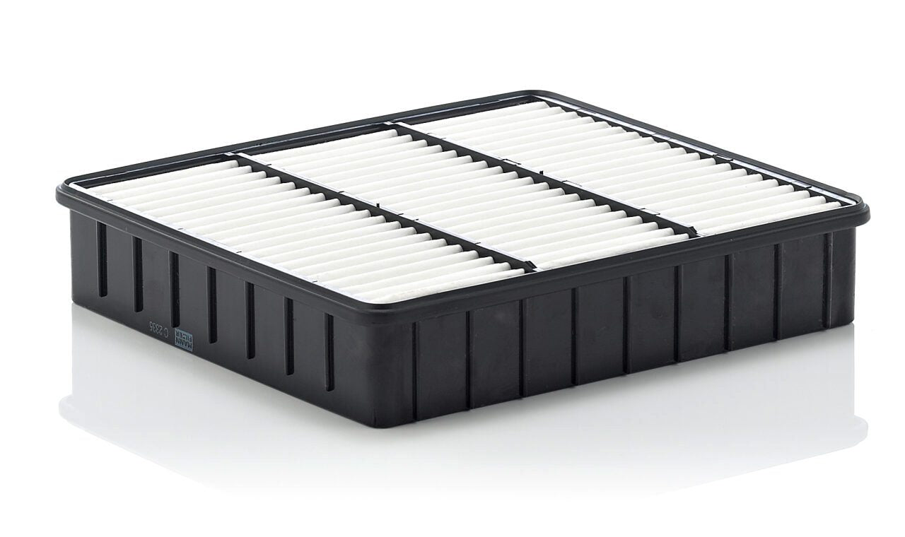 High-quality MANN-FILTER air filters for clean air intake and optimum protection for your engine, mass air flow sensor & other sensitive components / They meet requirements of modern engine technology. Highest dirt holding capacity and dirt separation efficiency, low flow resistance and high pleat stability ensure functional reliability during the entire service interval.