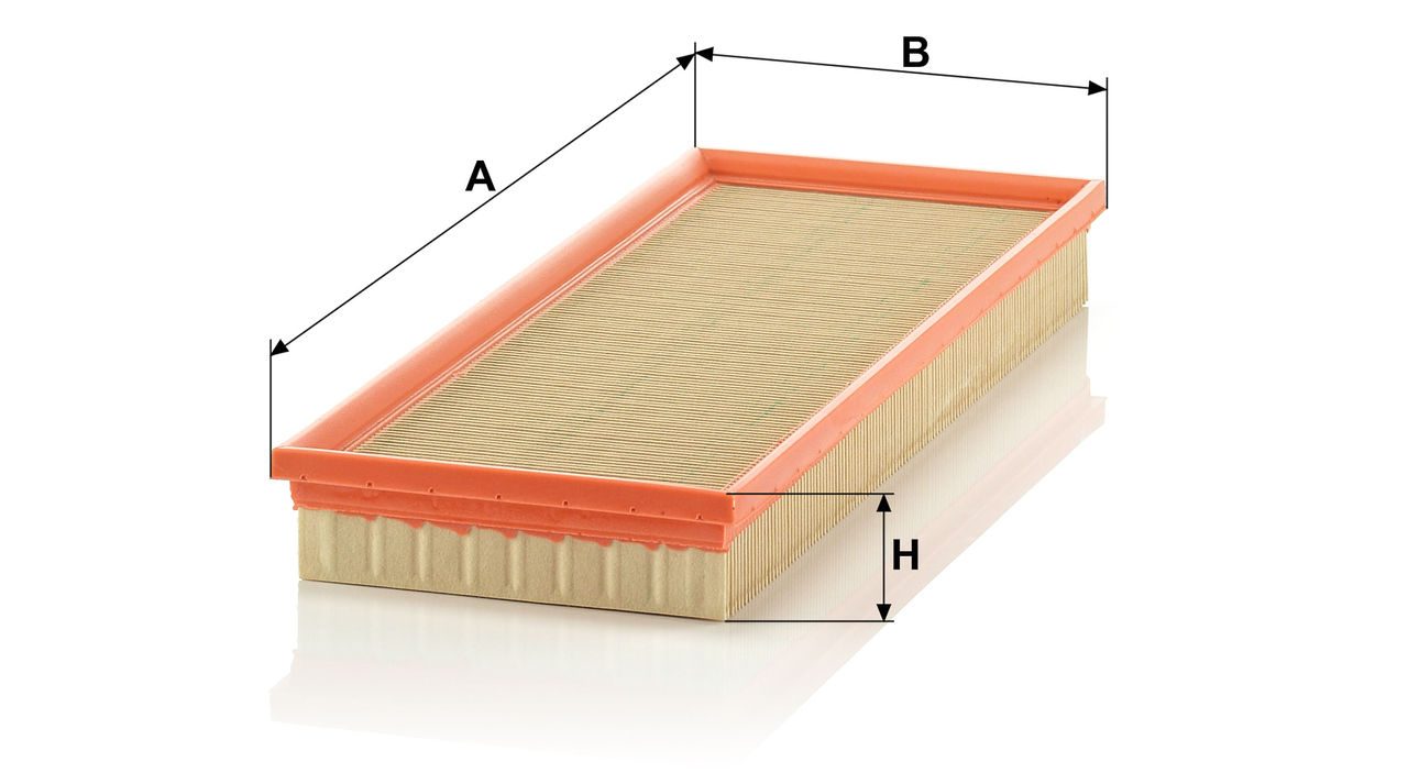 High-quality MANN-FILTER air filters for clean air intake and optimum protection for your engine, mass air flow sensor & other sensitive components / They meet requirements of modern engine technology. Highest dirt holding capacity and dirt separation efficiency, low flow resistance and high pleat stability ensure functional reliability during the entire service interval.