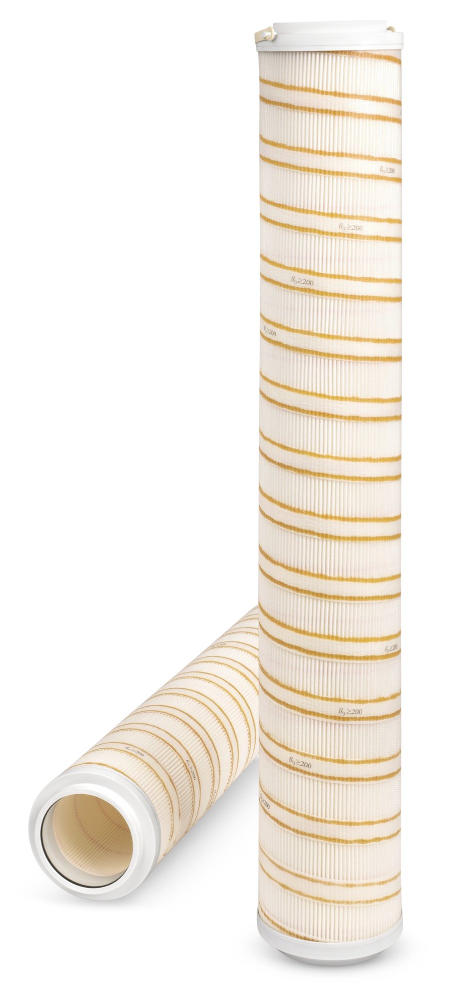 The efficiency of the element is shown using the Micron (µ) and Beta (β) ratings. The micron rating indicates the size of the particle being filtered and the beta rating the efficiency, calculated as 1/β.