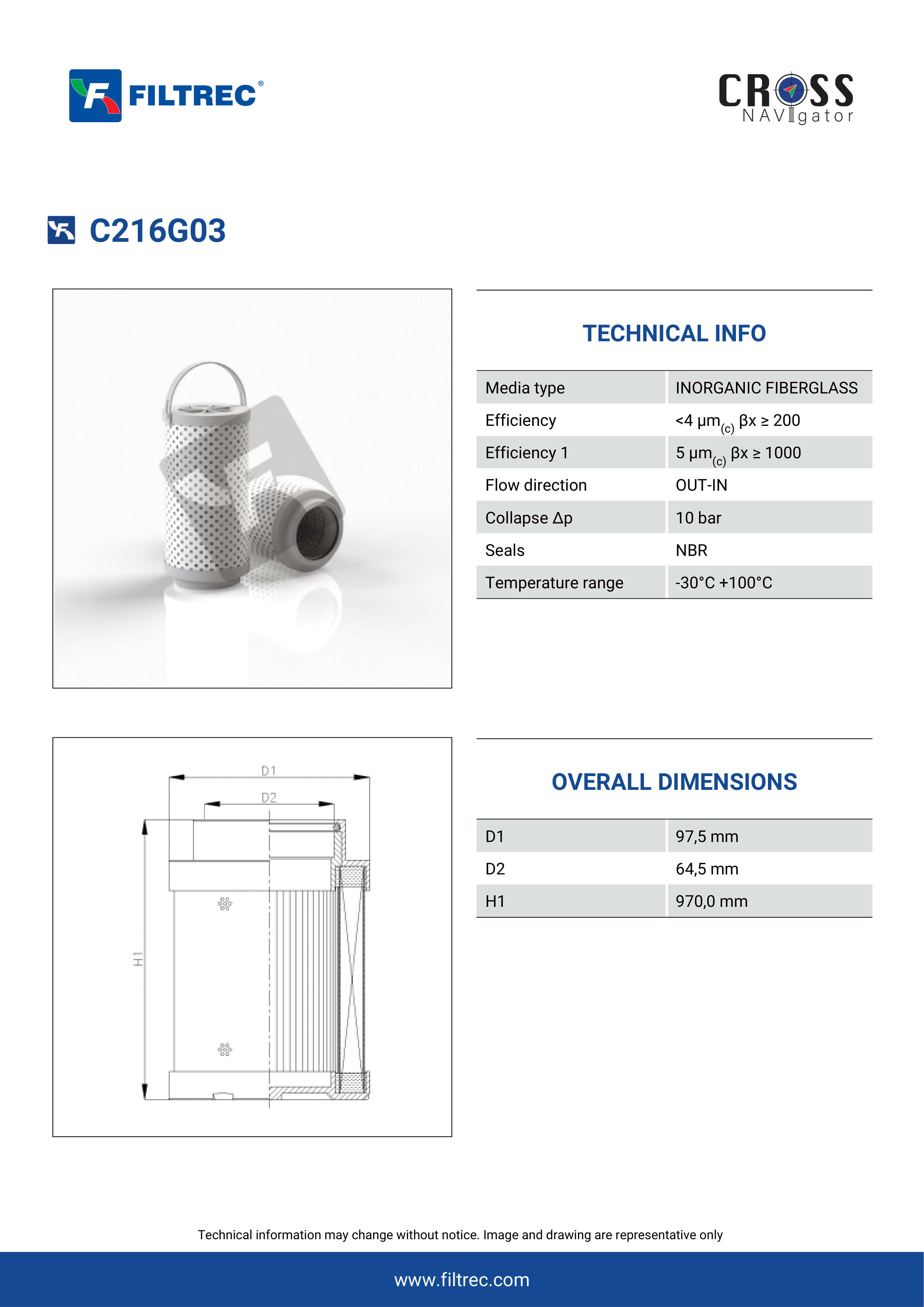 The efficiency of the element is shown using the Micron (µ) and Beta (β) ratings. The micron rating indicates the size of the particle being filtered and the beta rating the efficiency, calculated as 1/β.