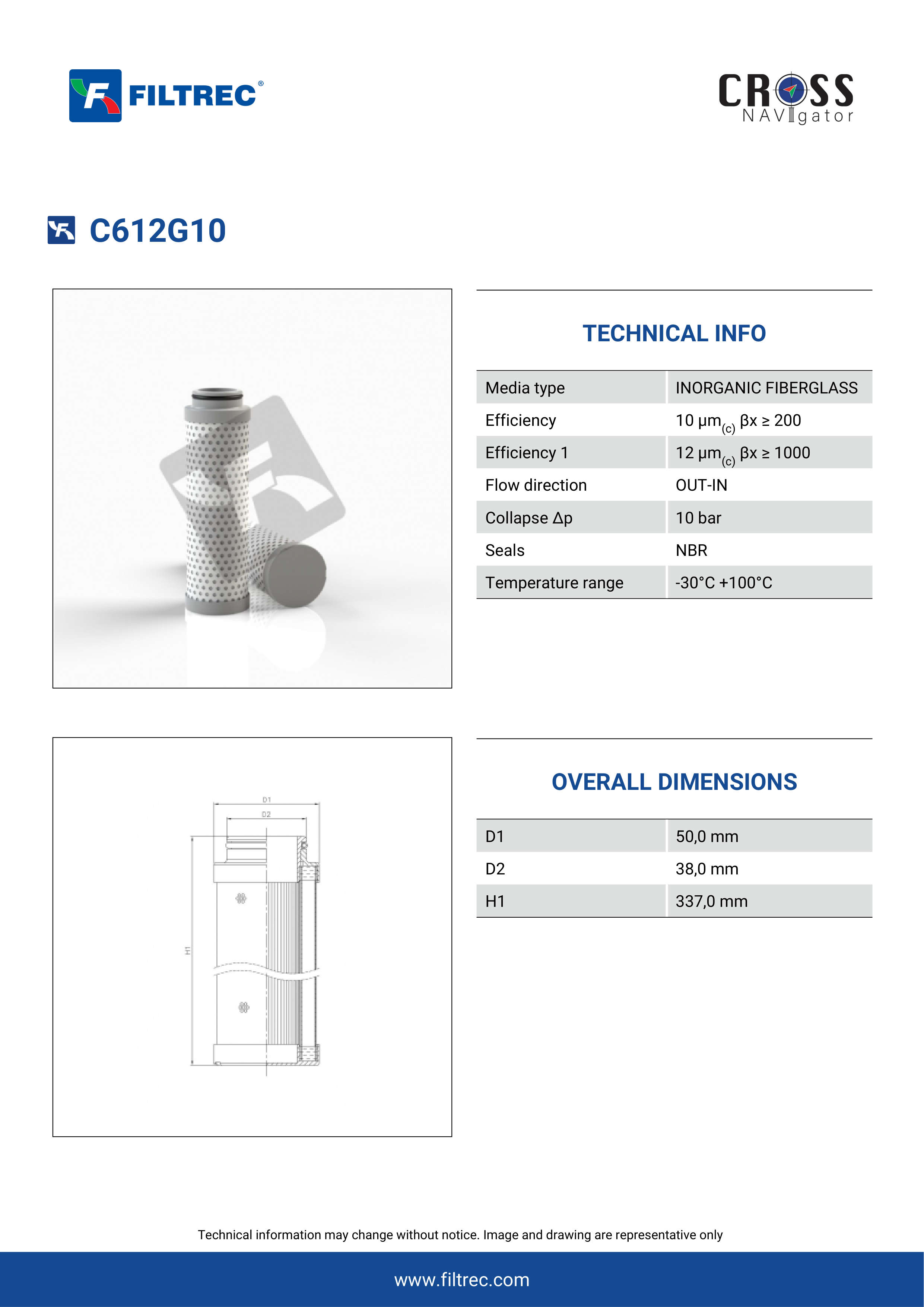 Genuine Filtrec C612G10. This Filtrec element is designed to meet or exceed the quality and performance of brand OEM’s ensuring superior filtration performance and long-lasting durability.
