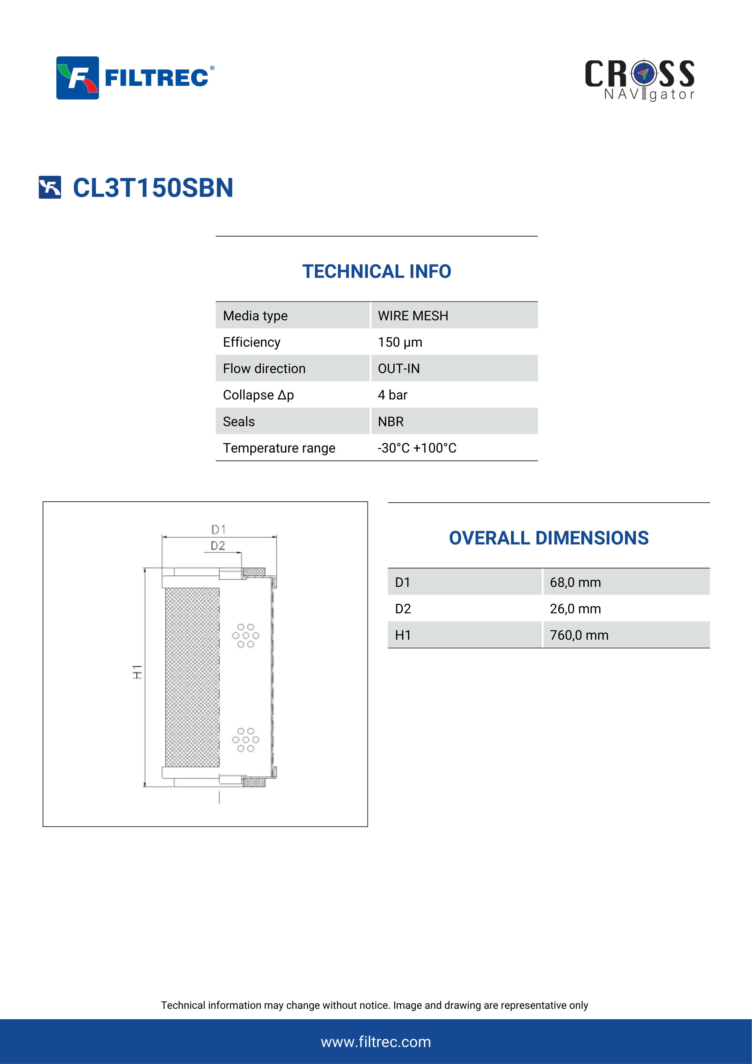 Genuine Filtrec CL3T150SBN. This Filtrec element is designed to meet or exceed the quality and performance of brand OEM’s ensuring superior filtration performance and long-lasting durability.