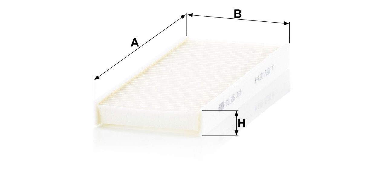 High-quality MANN-FILTER cabin filters offer almost 100% protection against particles such as pollen, diesel soot and tyre abrasion - for a feel-good climate in the vehicle interior and protection of the air conditioning system. Exact fit and perfect tightness ensure constant filtration performance during the entire service interval / Optimum vehicle interior ventilation due to the high air flow capacity.Specification