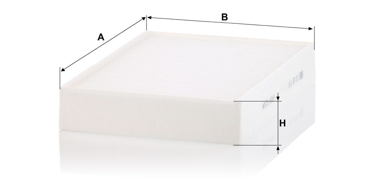 High-quality MANN-FILTER cabin filters offer almost 100% protection against particles such as pollen, diesel soot and tyre abrasion - for a feel-good climate in the vehicle interior and protection of the air conditioning system. Exact fit and perfect tightness ensure constant filtration performance during the entire service interval / Optimum vehicle interior ventilation due to the high air flow capacity.Specification