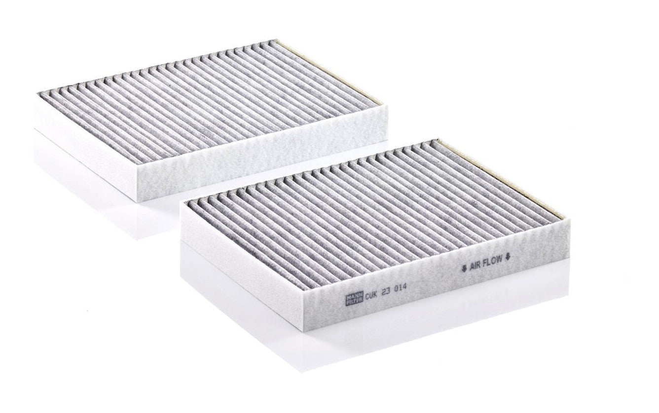 High-quality MANN-FILTER cabin filters with active carbon - nearly 100% protection from particles like pollen, diesel soot & tyre abrasion / Additional protection from harmful gases & unpleasant odour. The trated highly-effective activated carbon gives protection against harmful gases such as ozone, nitrogen oxide or sulphur dioxide and eliminates unpleasant odours during the entire service interval.