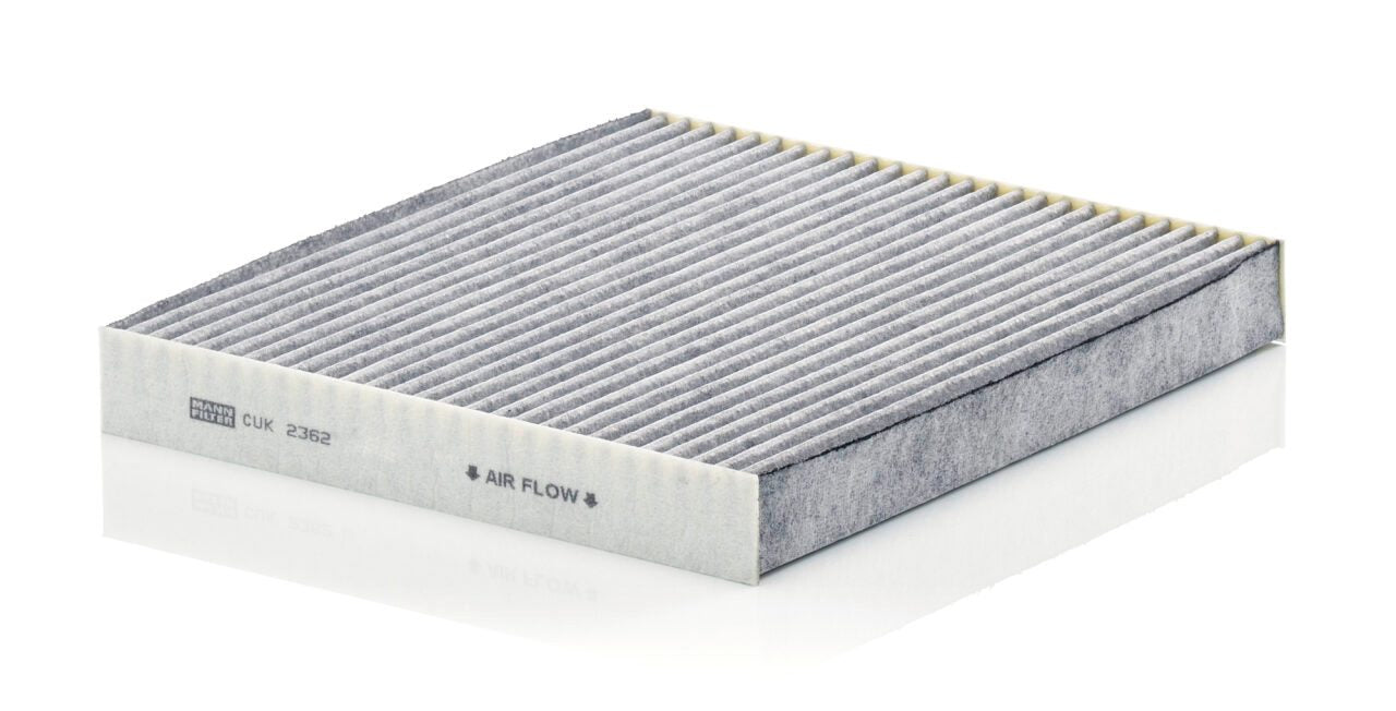 High-quality MANN-FILTER cabin filters with active carbon - nearly 100% protection from particles like pollen, diesel soot & tyre abrasion / Additional protection from harmful gases & unpleasant odour. The trated highly-effective activated carbon gives protection against harmful gases such as ozone, nitrogen oxide or sulphur dioxide and eliminates unpleasant odours during the entire service interval.