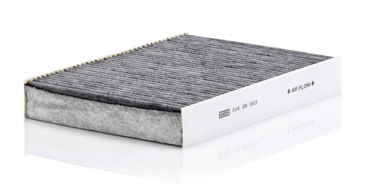 High-quality MANN-FILTER cabin filters with active carbon - nearly 100% protection from particles like pollen, diesel soot & tyre abrasion / Additional protection from harmful gases & unpleasant odour. The trated highly-effective activated carbon gives protection against harmful gases such as ozone, nitrogen oxide or sulphur dioxide and eliminates unpleasant odours during the entire service interval.