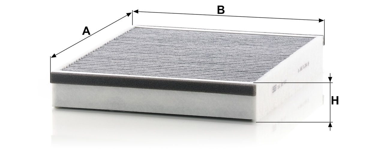 High-quality MANN-FILTER cabin filters with active carbon - nearly 100% protection from particles like pollen, diesel soot & tyre abrasion / Additional protection from harmful gases & unpleasant odour. The trated highly-effective activated carbon gives protection against harmful gases such as ozone, nitrogen oxide or sulphur dioxide and eliminates unpleasant odours during the entire service interval.