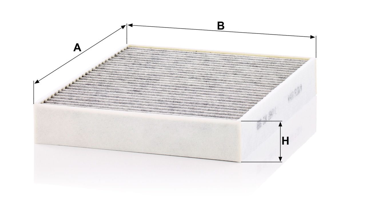 High-quality MANN-FILTER cabin filters with active carbon - nearly 100% protection from particles like pollen, diesel soot & tyre abrasion / Additional protection from harmful gases & unpleasant odour. The trated highly-effective activated carbon gives protection against harmful gases such as ozone, nitrogen oxide or sulphur dioxide and eliminates unpleasant odours during the entire service interval.Specification