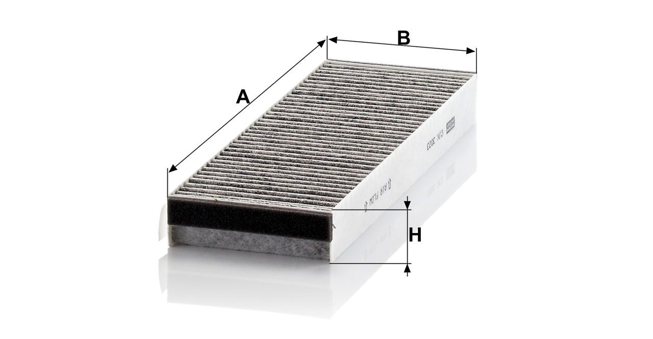 High-quality MANN-FILTER cabin filters with active carbon - nearly 100% protection from particles like pollen, diesel soot & tyre abrasion / Additional protection from harmful gases & unpleasant odour. The trated highly-effective activated carbon gives protection against harmful gases such as ozone, nitrogen oxide or sulphur dioxide and eliminates unpleasant odours during the entire service interval.
