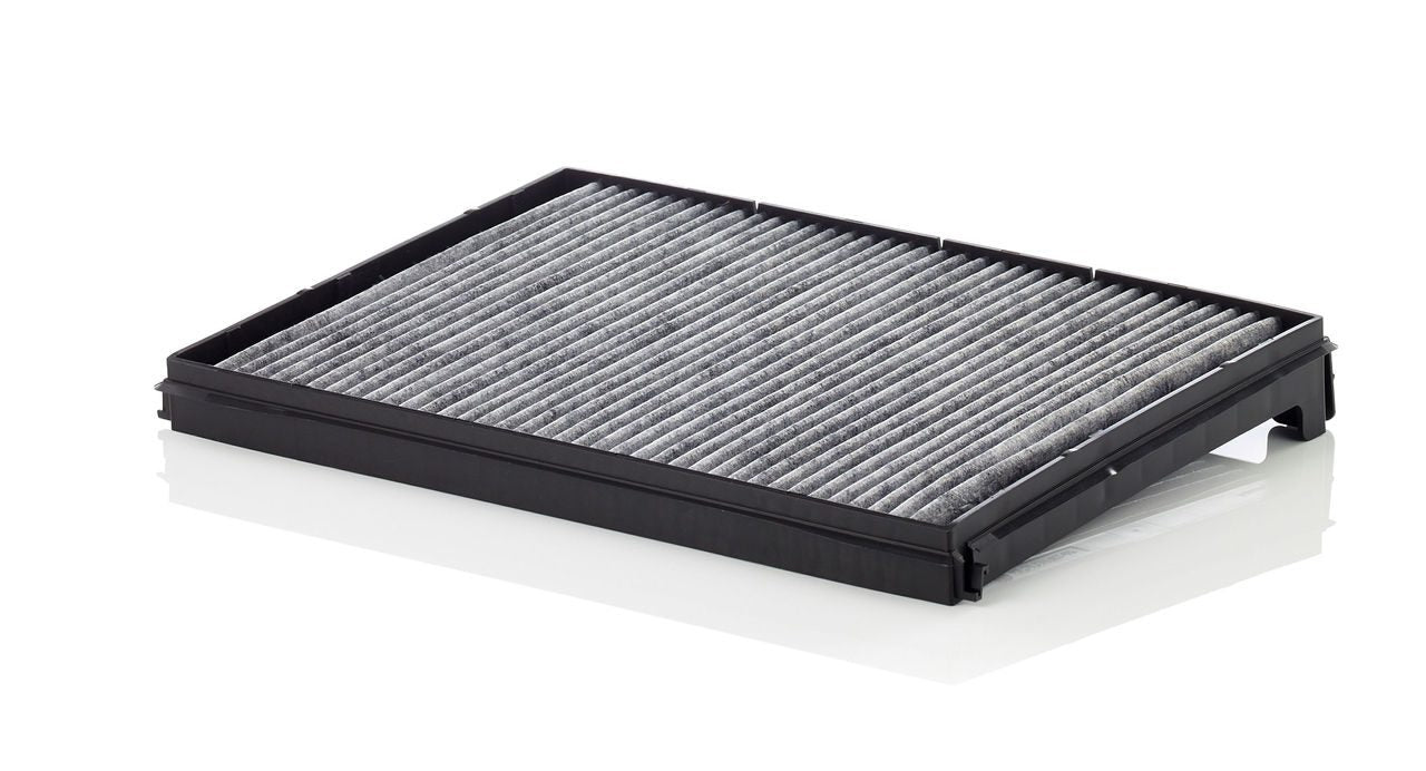 High-quality MANN-FILTER cabin filters with active carbon - nearly 100% protection from particles like pollen, diesel soot & tyre abrasion / Additional protection from harmful gases & unpleasant odour. The trated highly-effective activated carbon gives protection against harmful gases such as ozone, nitrogen oxide or sulphur dioxide and eliminates unpleasant odours during the entire service interval.
