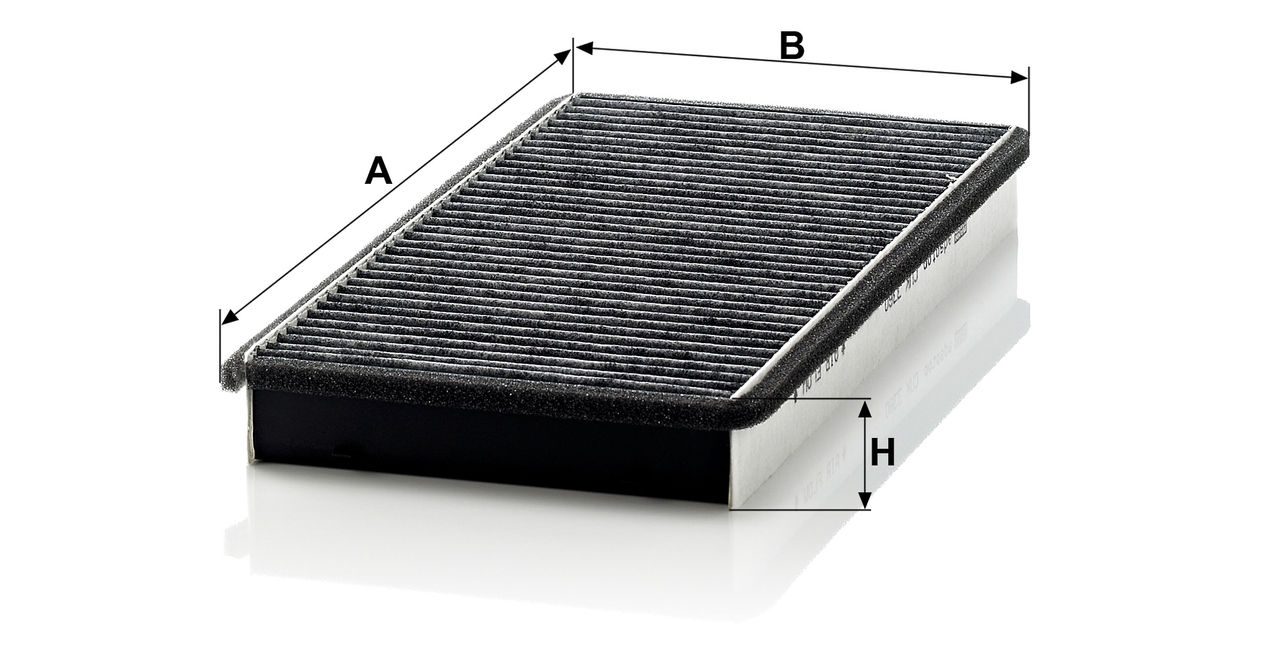 High-quality MANN-FILTER cabin filters with active carbon - nearly 100% protection from particles like pollen, diesel soot & tyre abrasion / Additional protection from harmful gases & unpleasant odour. The trated highly-effective activated carbon gives protection against harmful gases such as ozone, nitrogen oxide or sulphur dioxide and eliminates unpleasant odours during the entire service interval.