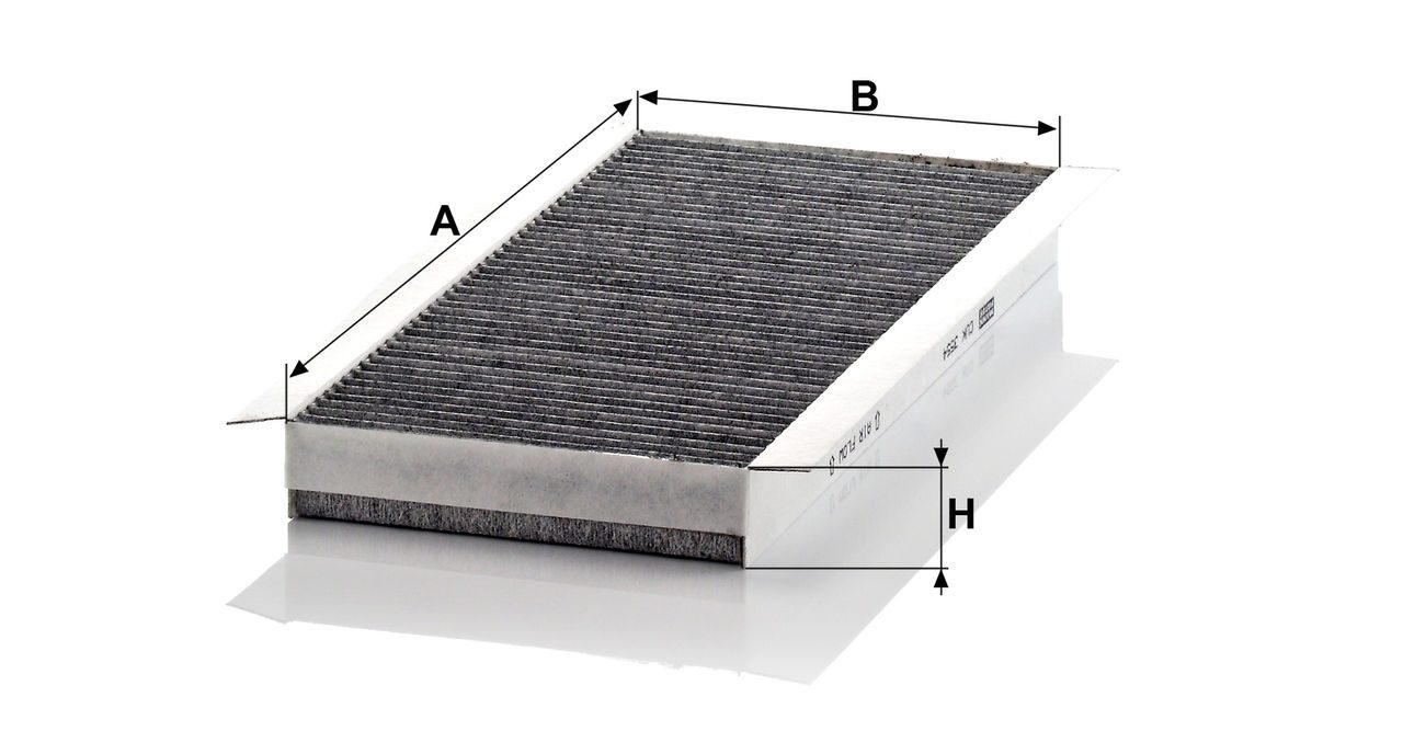 High-quality MANN-FILTER cabin filters with active carbon - nearly 100% protection from particles like pollen, diesel soot & tyre abrasion / Additional protection from harmful gases & unpleasant odour. The trated highly-effective activated carbon gives protection against harmful gases such as ozone, nitrogen oxide or sulphur dioxide and eliminates unpleasant odours during the entire service interval.