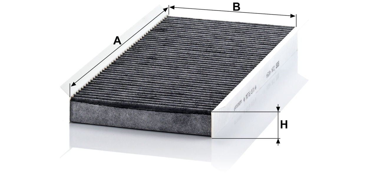 High-quality MANN-FILTER cabin filters with active carbon - nearly 100% protection from particles like pollen, diesel soot & tyre abrasion / Additional protection from harmful gases & unpleasant odour. The trated highly-effective activated carbon gives protection against harmful gases such as ozone, nitrogen oxide or sulphur dioxide and eliminates unpleasant odours during the entire service interval.