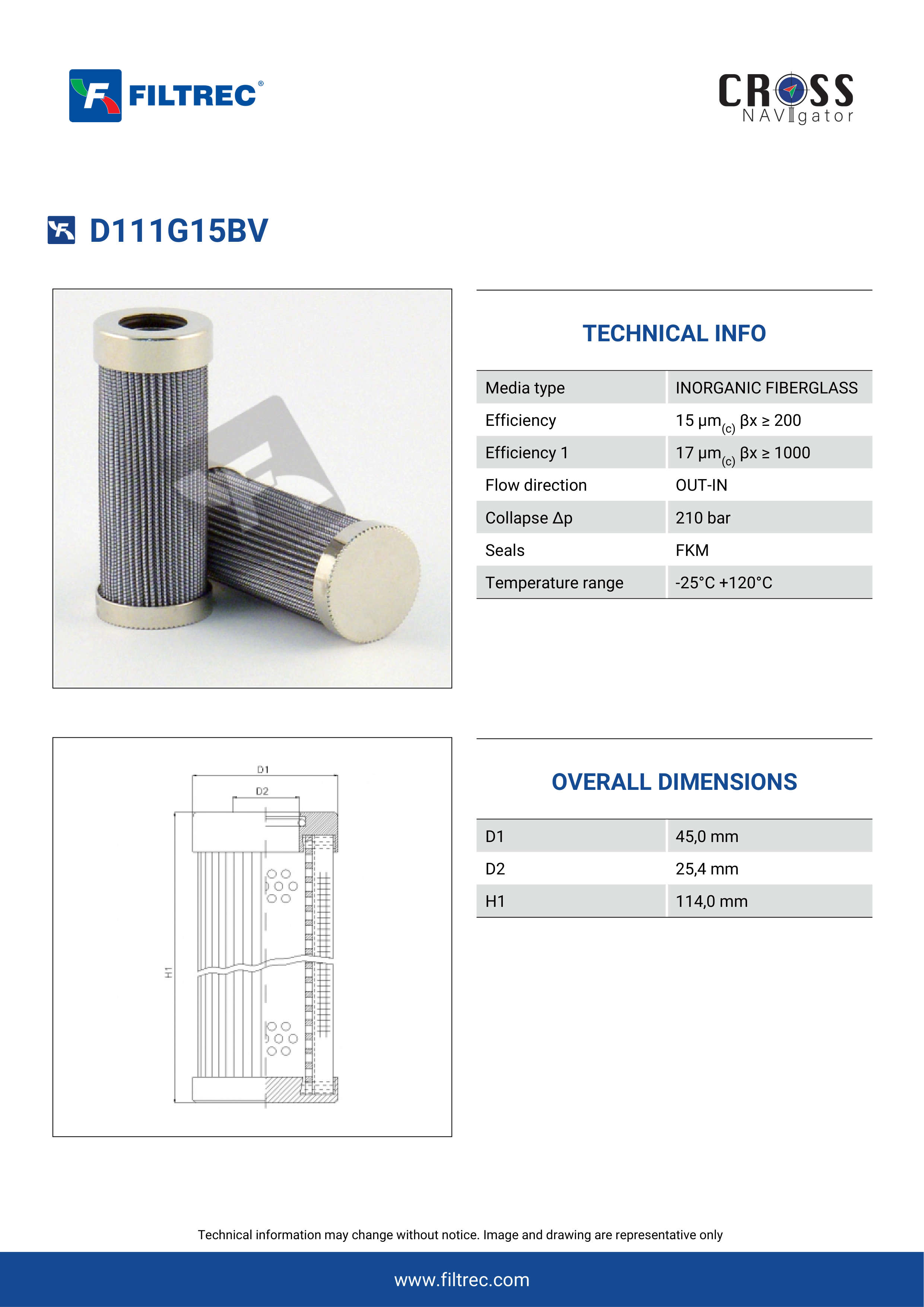 Genuine Filtrec D111G15BV. This Filtrec element is designed to meet or exceed the quality and performance of brand OEM’s ensuring superior filtration performance and long-lasting durability.