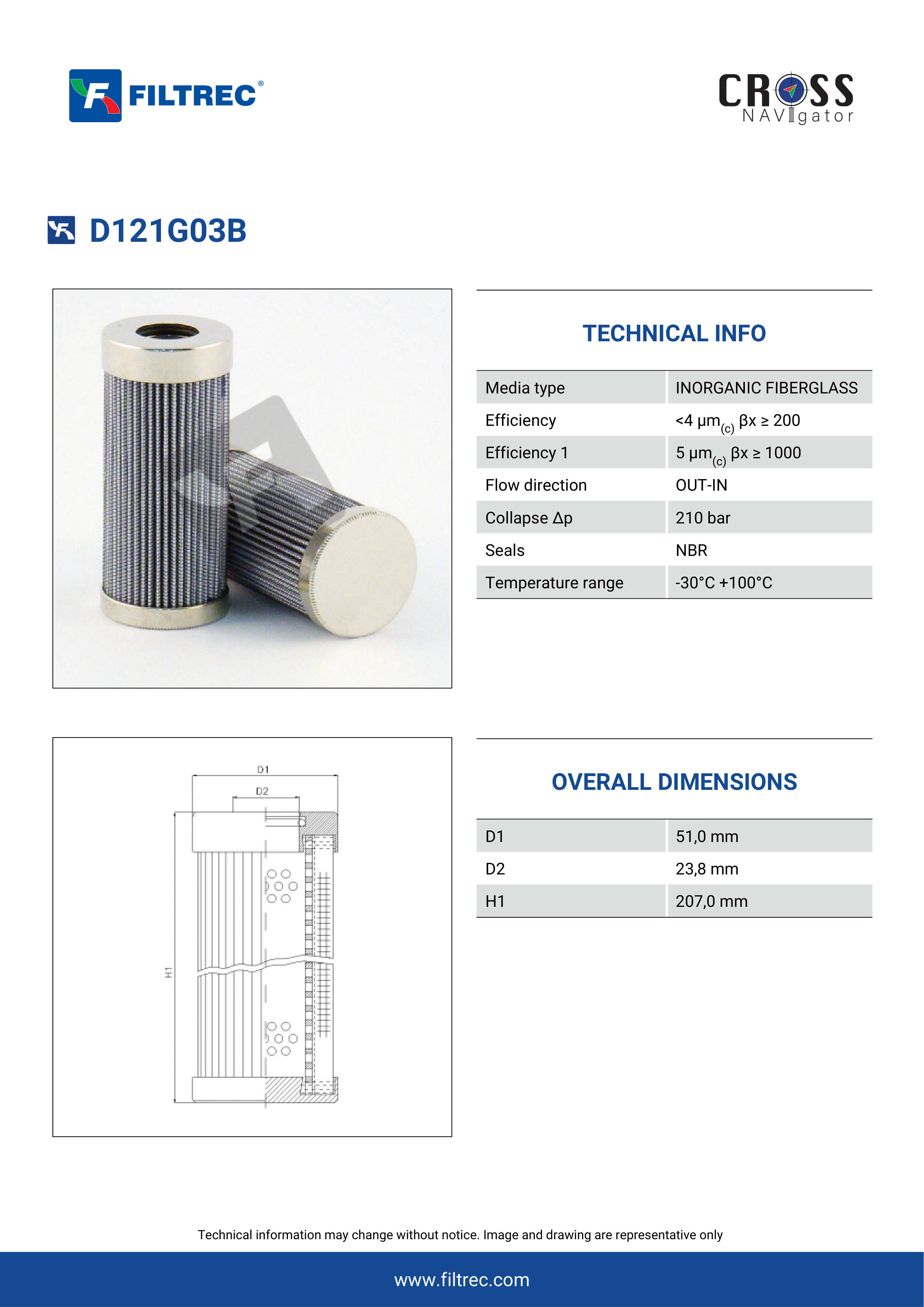 Genuine Filtrec D121G03B. This Filtrec element is designed to meet or exceed the quality and performance of brand OEM’s ensuring superior filtration performance and long-lasting durability.