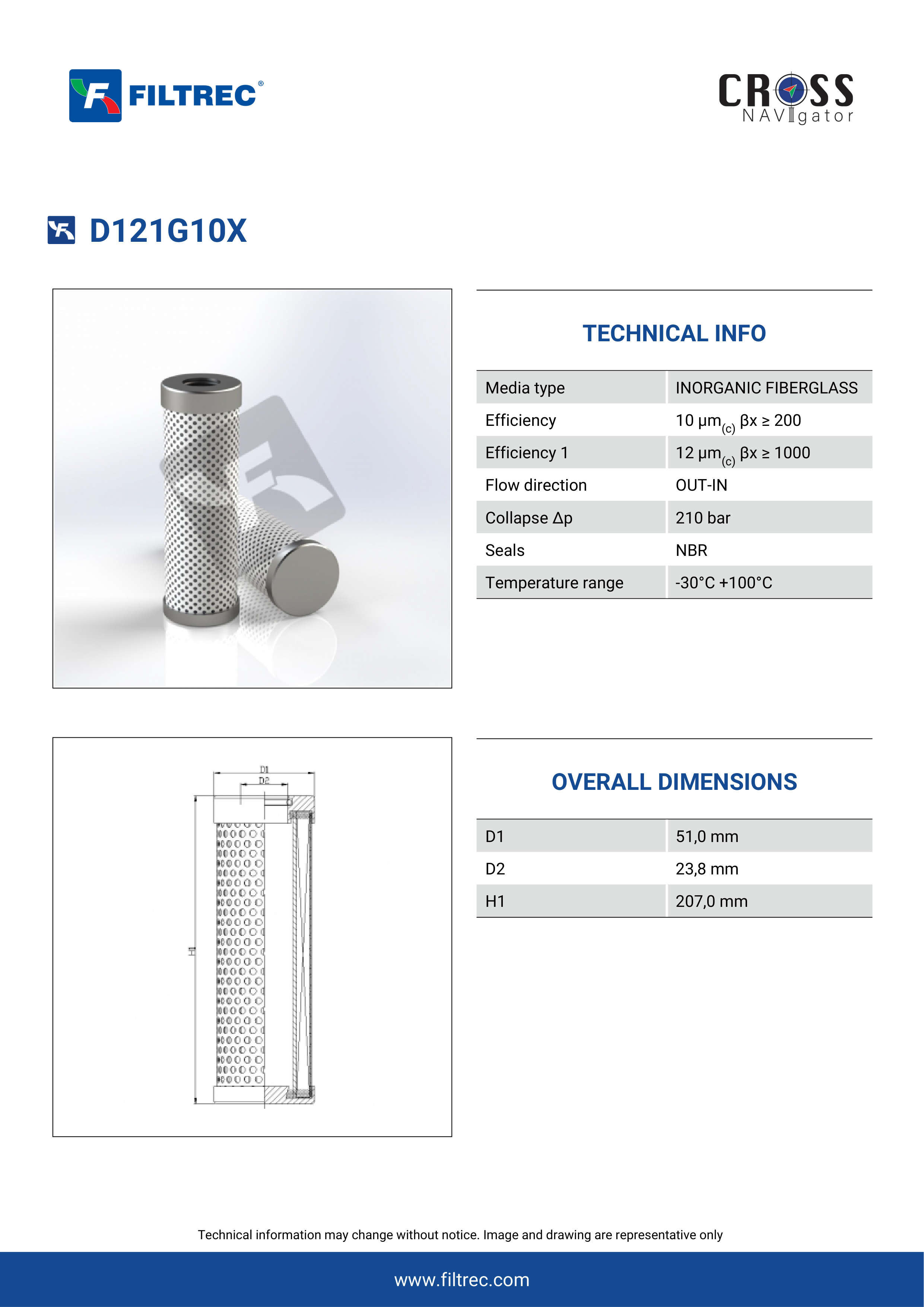Genuine Filtrec D121G10X. This Filtrec element is designed to meet or exceed the quality and performance of brand OEM’s ensuring superior filtration performance and long-lasting durability.
