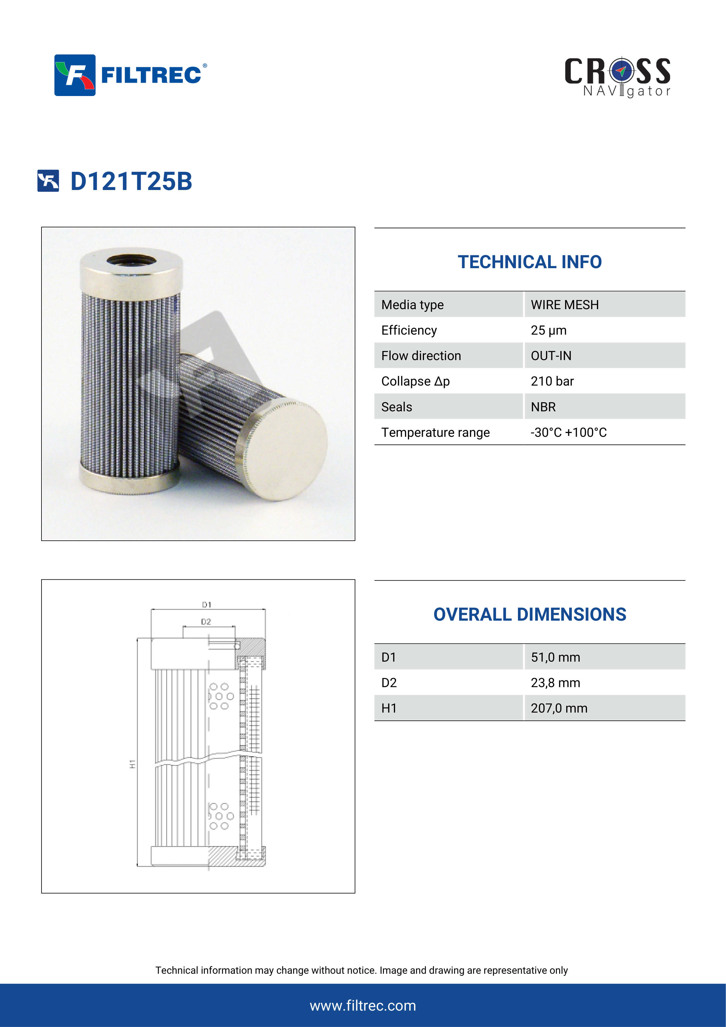 Genuine Filtrec D121T25B. This Filtrec element is designed to meet or exceed the quality and performance of brand OEM’s ensuring superior filtration performance and long-lasting durability.
