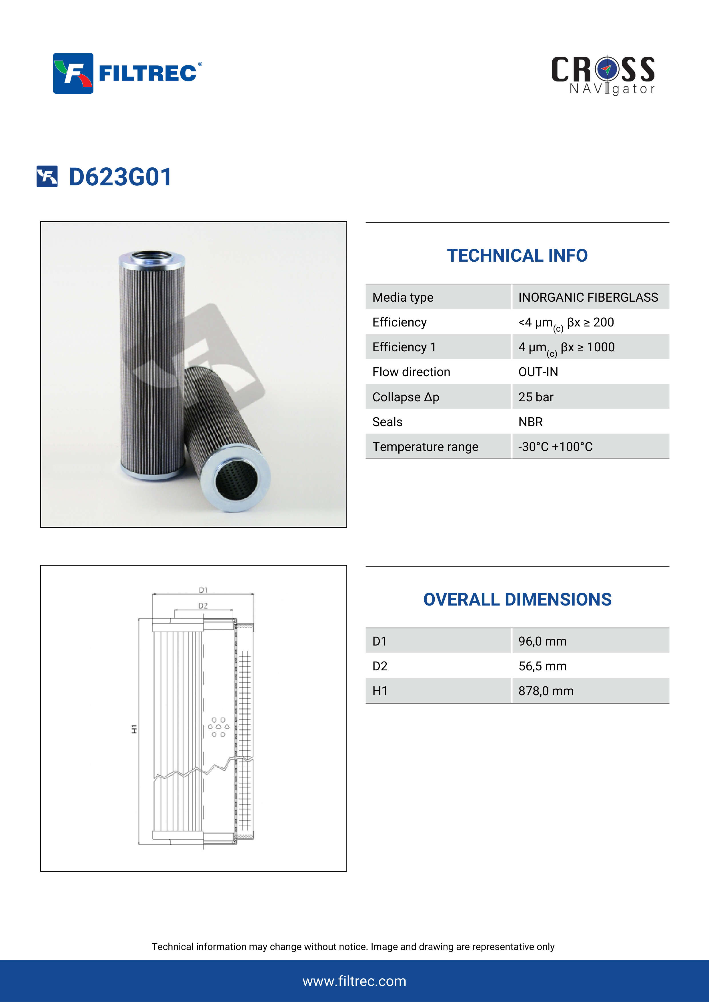 The efficiency of the element is shown using the Micron (µ) and Beta (β) ratings. The micron rating indicates the size of the particle being filtered and the beta rating the efficiency, calculated as 1/β.