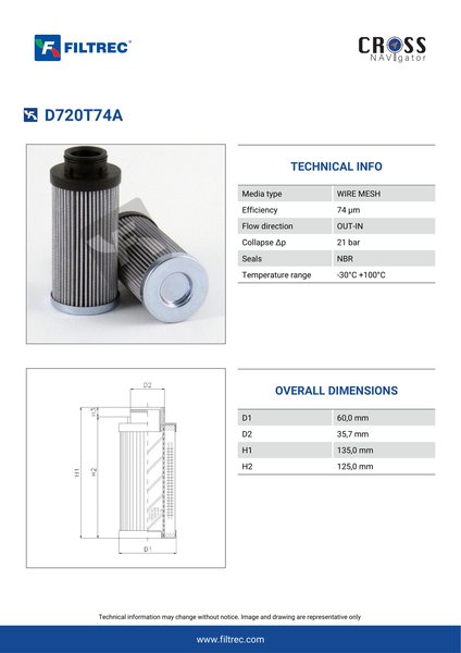 The efficiency of the element is shown using the Micron (µ) and Beta (β) ratings. The micron rating indicates the size of the particle being filtered and the beta rating the efficiency, calculated as 1/β.