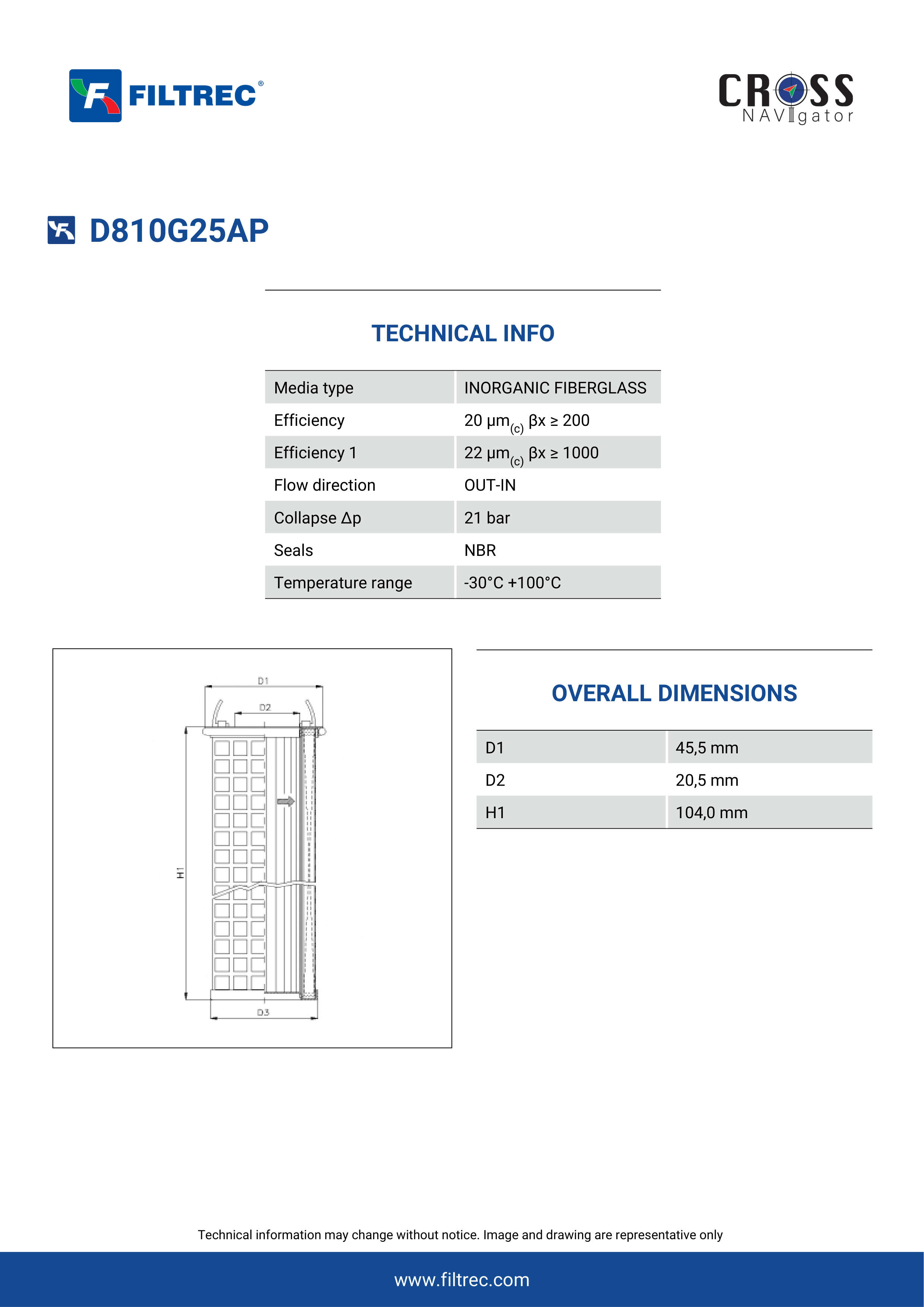The efficiency of the element is shown using the Micron (µ) and Beta (β) ratings. The micron rating indicates the size of the particle being filtered and the beta rating the efficiency, calculated as 1/β.