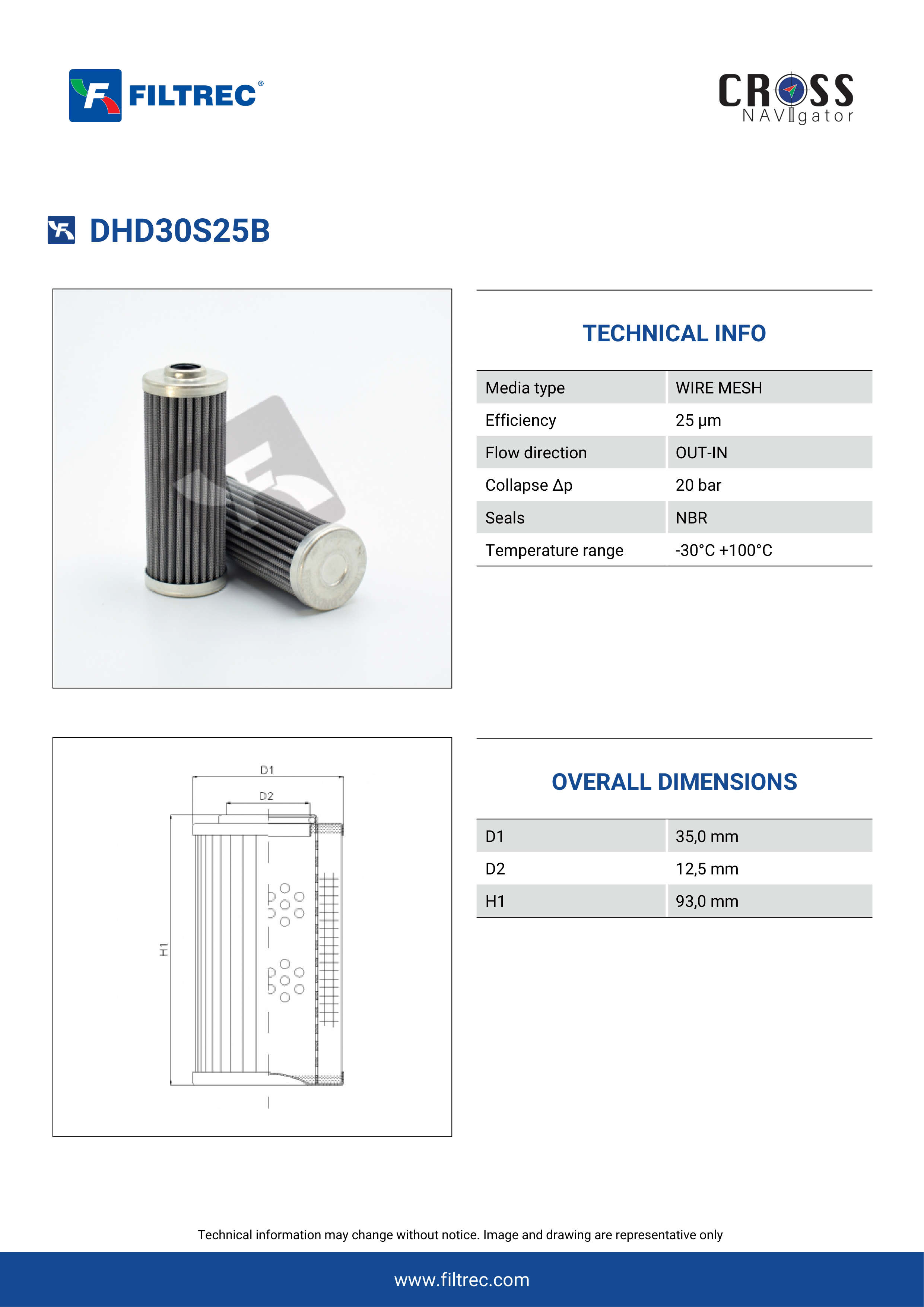 The efficiency of the element is shown using the Micron (µ) and Beta (β) ratings. The micron rating indicates the size of the particle being filtered and the beta rating the efficiency, calculated as 1/β.