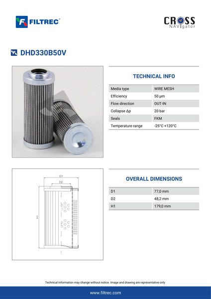 Genuine Filtrec DHD330B50V