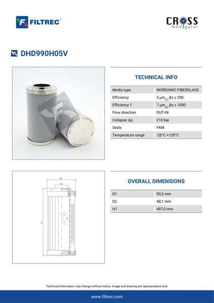 Engineered with their high performance media and a durable design, the DHD990H05V provides reliable and consistent performance over its lifespan, even in harsh operating environments. When you order from FilterFinder, you can trust that you are getting a reliable and high-quality replacement filter that will keep your system running smoothly.