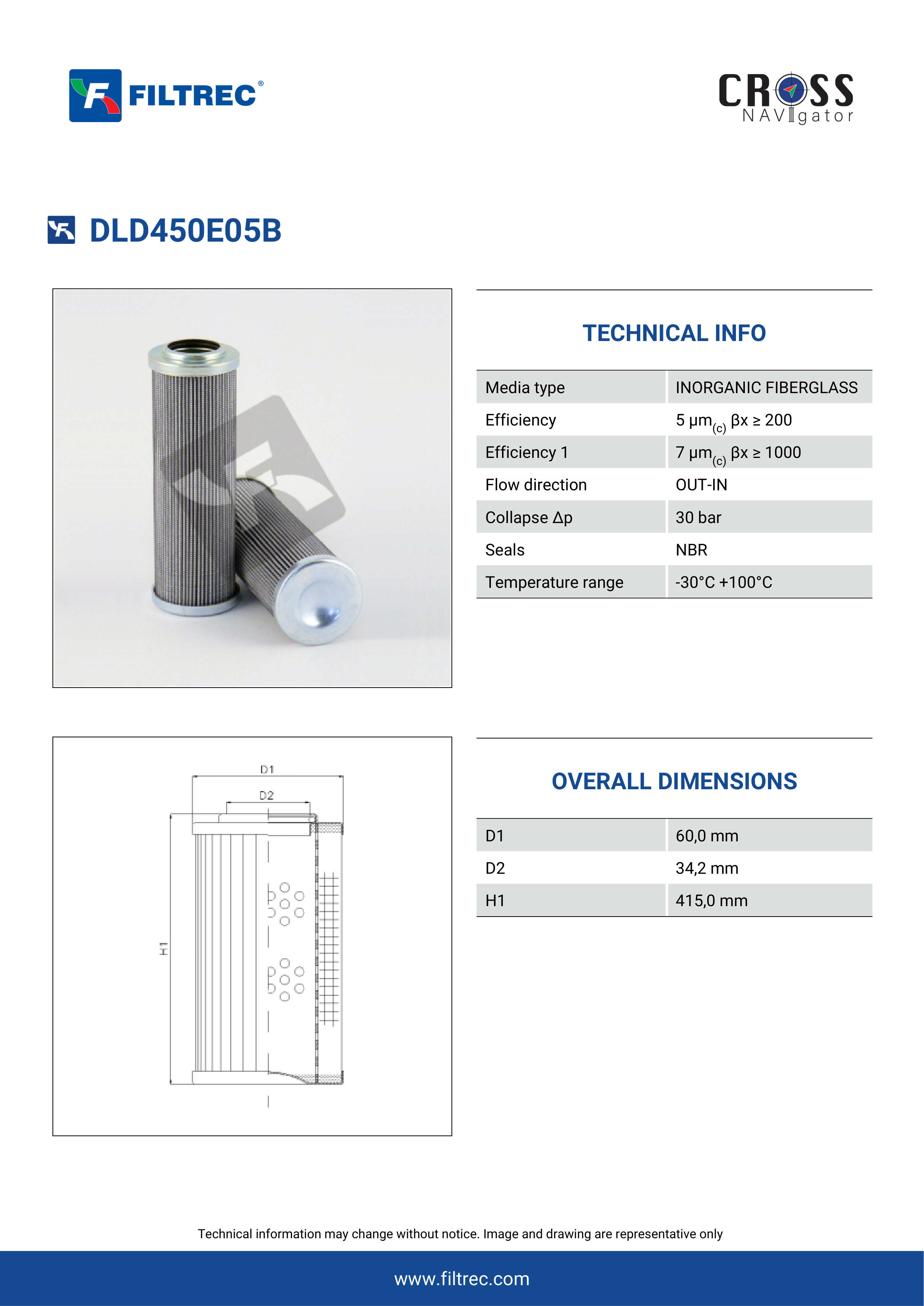 Genuine Filtrec DLD450E05B. This Filtrec element is designed to meet or exceed the quality and performance of brand OEM’s ensuring superior filtration performance and long-lasting durability.