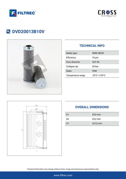 Genuine Filtrec DVD20013B10V. This Filtrec element is designed to meet or exceed the quality and performance of brand OEM’s ensuring superior filtration performance and long-lasting durability.